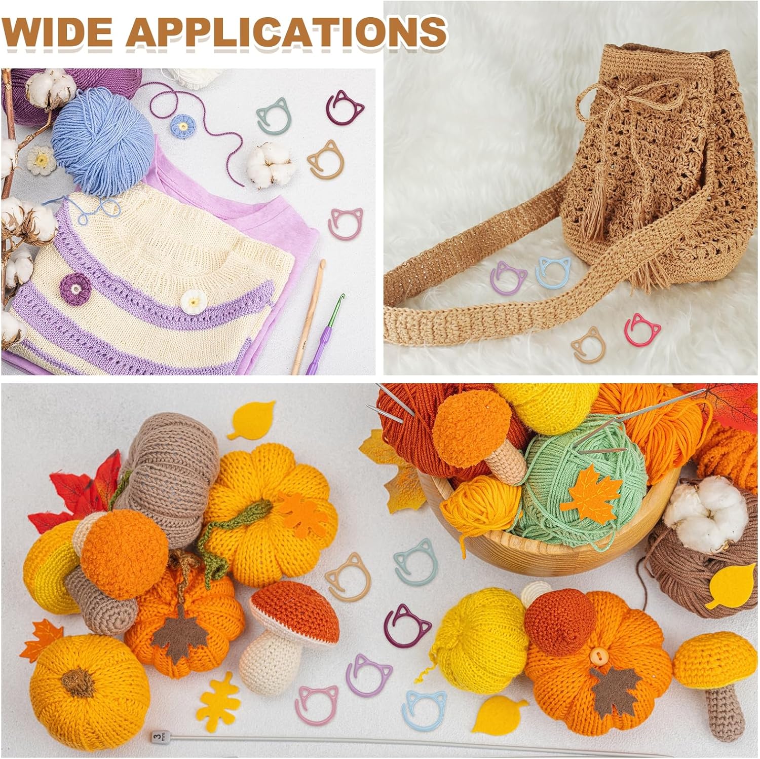 - Advantage: Lightweight Metal Construction: Crafted from smooth-polished metal that eliminates yarn snagging and withstands long-term use without deformation. Secure Tangle-Free Functionality: The split-ring design grips yarn firmly without slipping, yet releases smoothly for effortless repositioning during intricate projects. Instant Stitch Visibility: Cute cat shapes accelerate pattern tracking with clear visual cues.