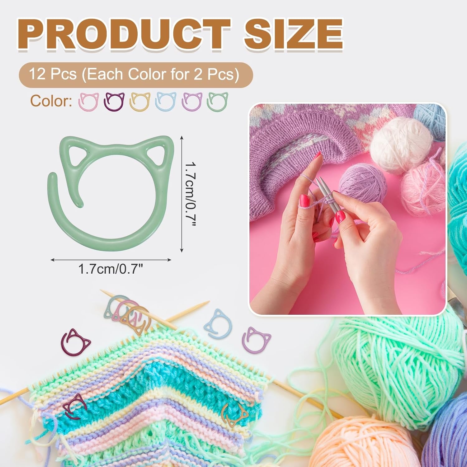 - Advantage: Lightweight Metal Construction: Crafted from smooth-polished metal that eliminates yarn snagging and withstands long-term use without deformation. Secure Tangle-Free Functionality: The split-ring design grips yarn firmly without slipping, yet releases smoothly for effortless repositioning during intricate projects. Instant Stitch Visibility: Cute cat shapes accelerate pattern tracking with clear visual cues.