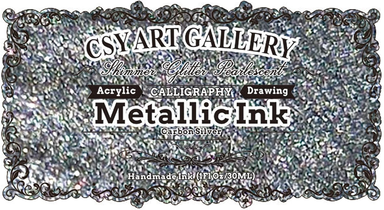 CSY Art Gallery Metallic Acrylic Paint Ink-Alcohol Inks -Crafts Paints Fast-Drying, Permanent Inks for Epoxy Resin, Tumblers, Fluid Art Painting, Glass, Metal, and More (Carbon Silver)