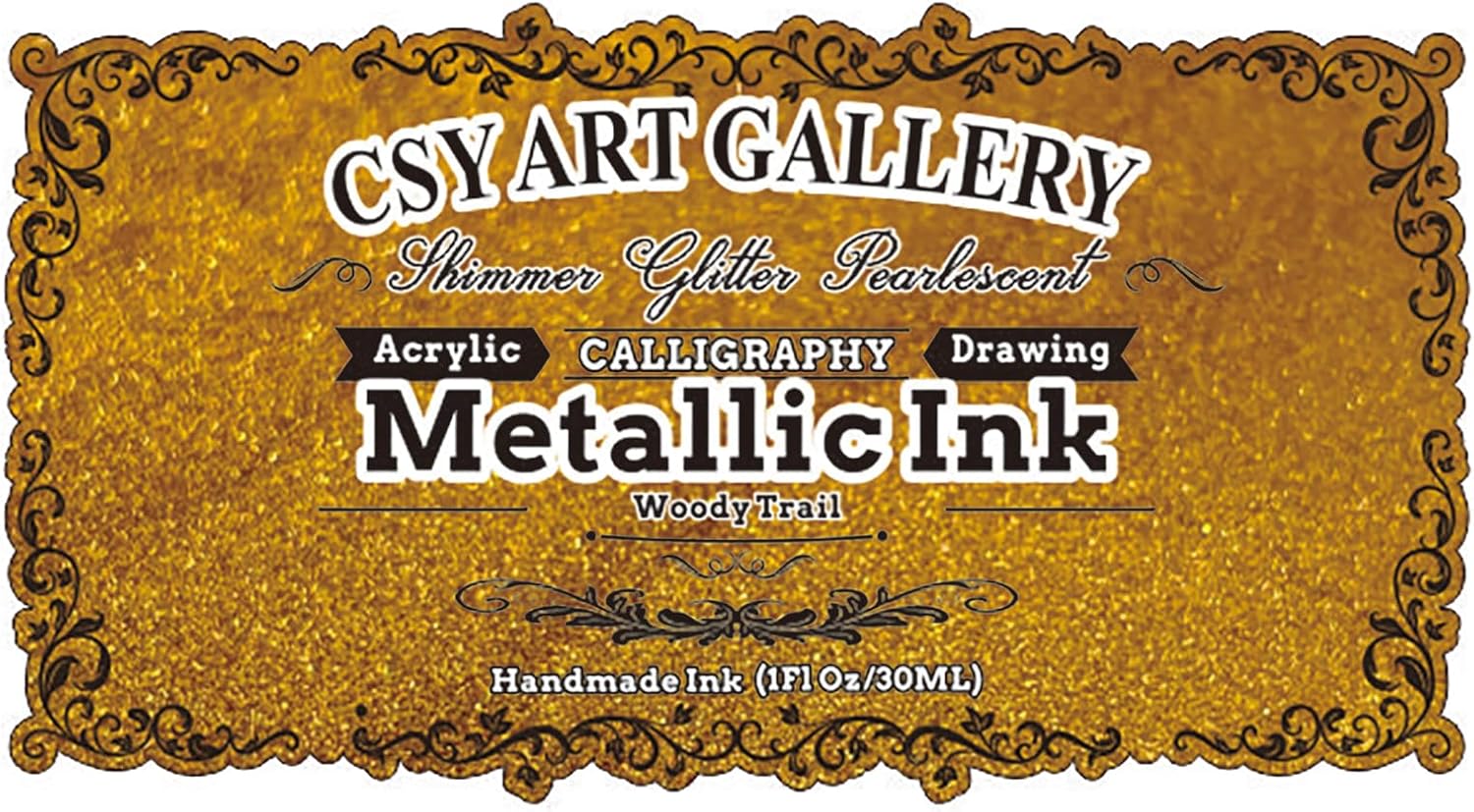 CSY Art GalleryMetallic Acrylic Paint Inks -Gold Calligraphy Ink -Golden Iridescent Pigment for Painting,Drawing,Sketch,Resin,Wood,Ceramic (Woody Trail)