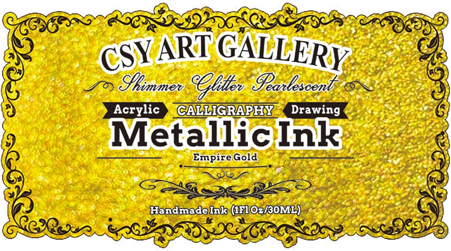CSY Art Gallery 1oz Ultra Shiny Quick Dry Metallic Gilding Paint -Acrylic Inks-Calligraphy Ink for Crafts, Resin Art, DIY, Furniture, Wood (Empire Gold)