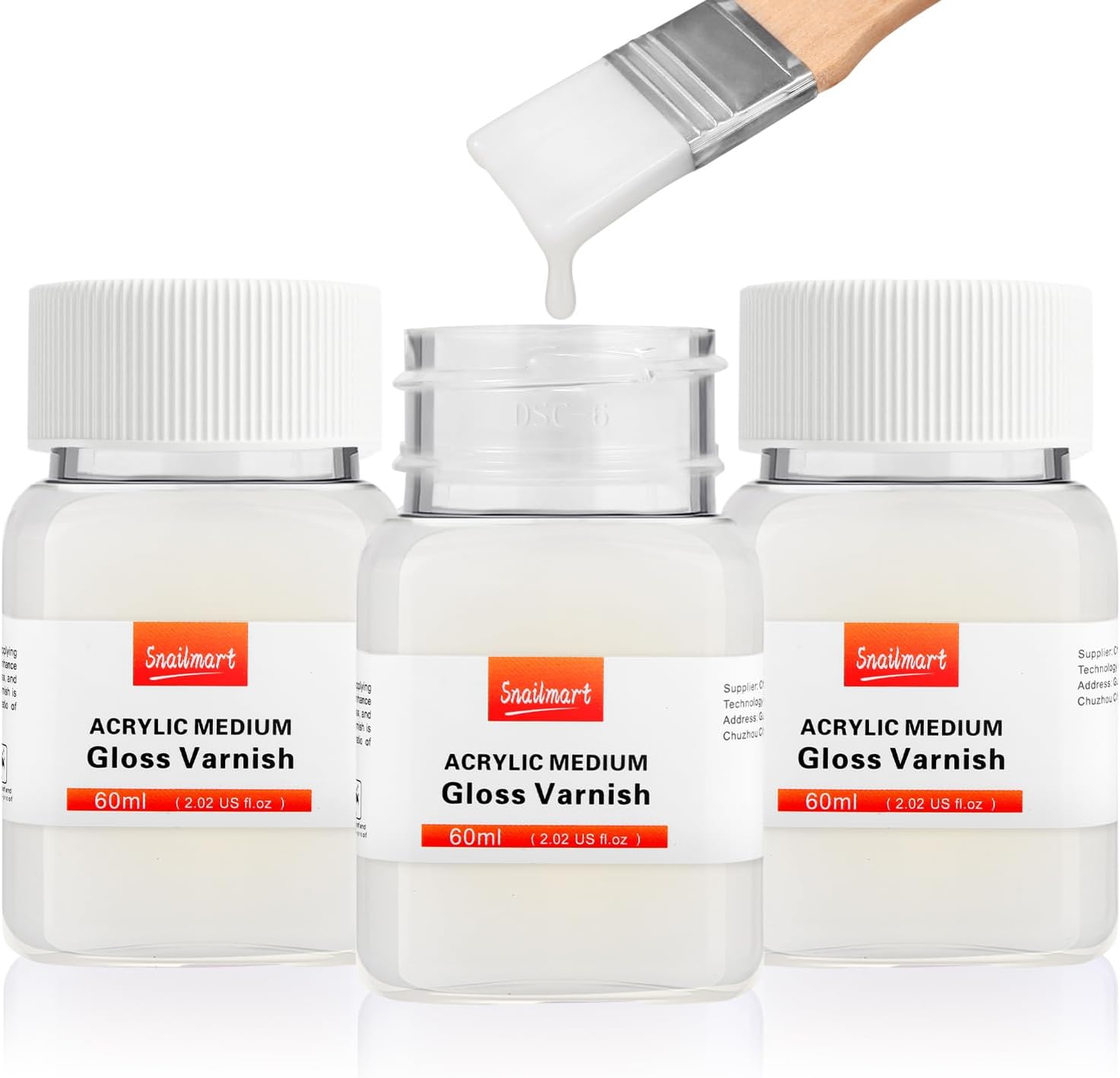 3Pcs Gloss Varnish for Acrylic Painting, 180ml Acrylic Varnish Clear Coat, Non-Yellowing, Non-Toxic for Artwork, Acrylics Paint, Suitable for Pro Artists, Hobby Painter