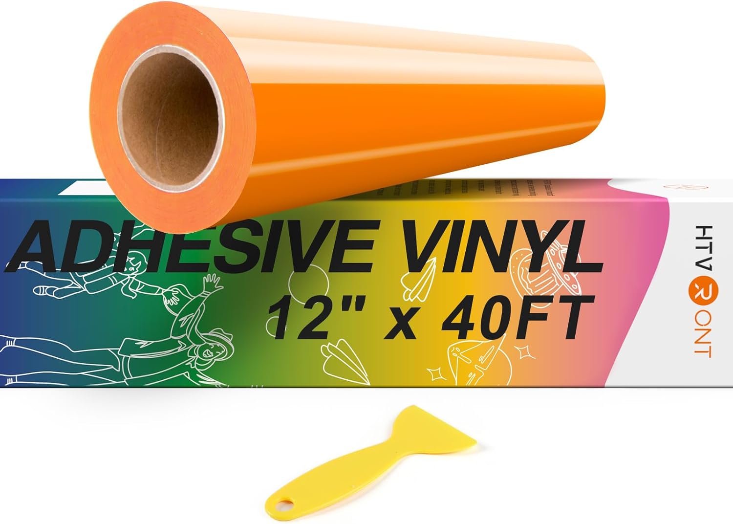 HTVRONT Orange Permanent Vinyl, 12" x 40 FT Adhesive Permanent Vinyl Roll for All Cutting Machine, Silhouette, Cameo Cutters, Signs, Scrapbooking, Craft, Die Cutters (Glossy Orange)