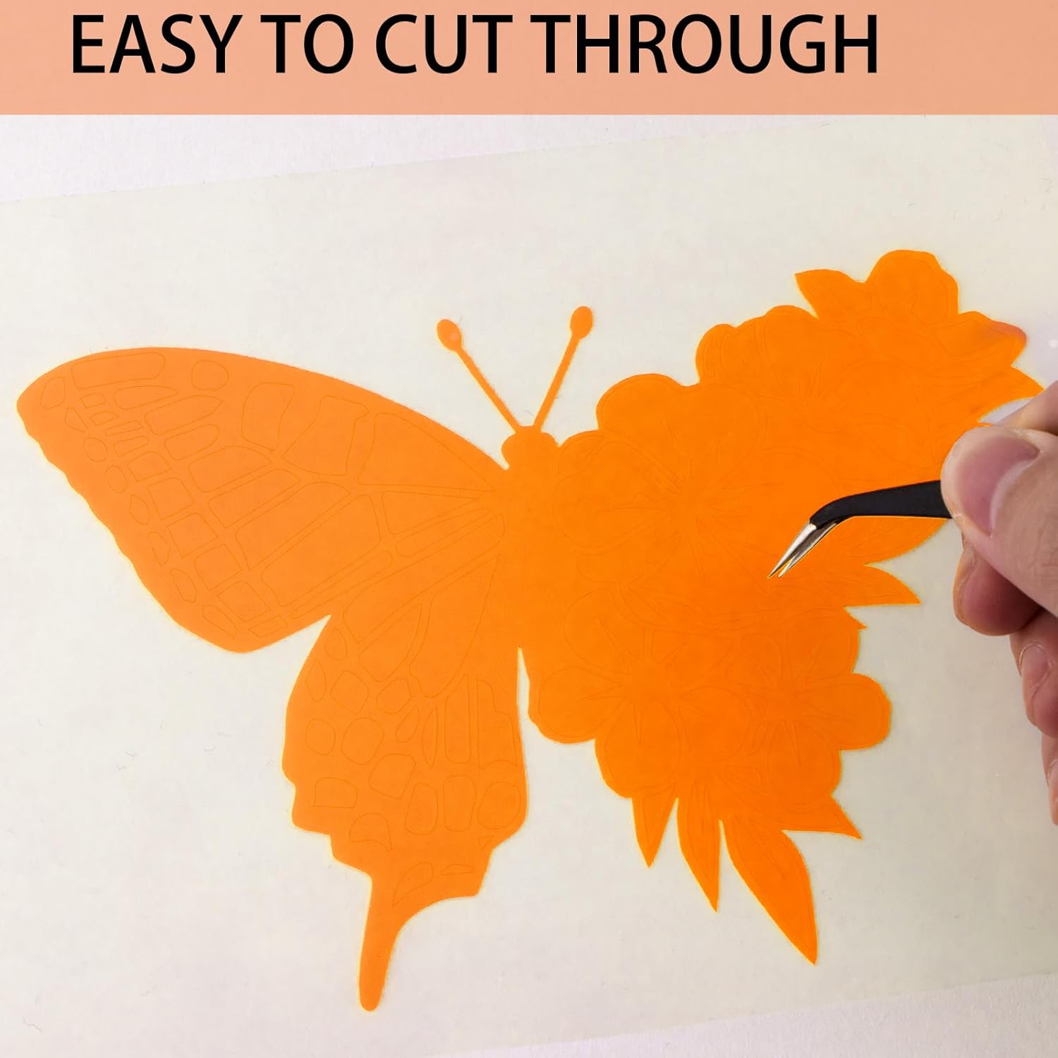 - EASY TO CUT & TRANSFER: The adhesive vinyl is glossy and smooth with a good cutting application characteristics, so you can cut and weed easily through the designs just right. Using our orange vinyl for cricut will not waste your precious time on bubbles and wrinkling. Our permanent orange vinyl can compatible with most cutting machines like the Cricut, Silhouette, Graphtec, Pazzles and any other Cutters that take Oracal 651 vinyl or similar vinyl sheets