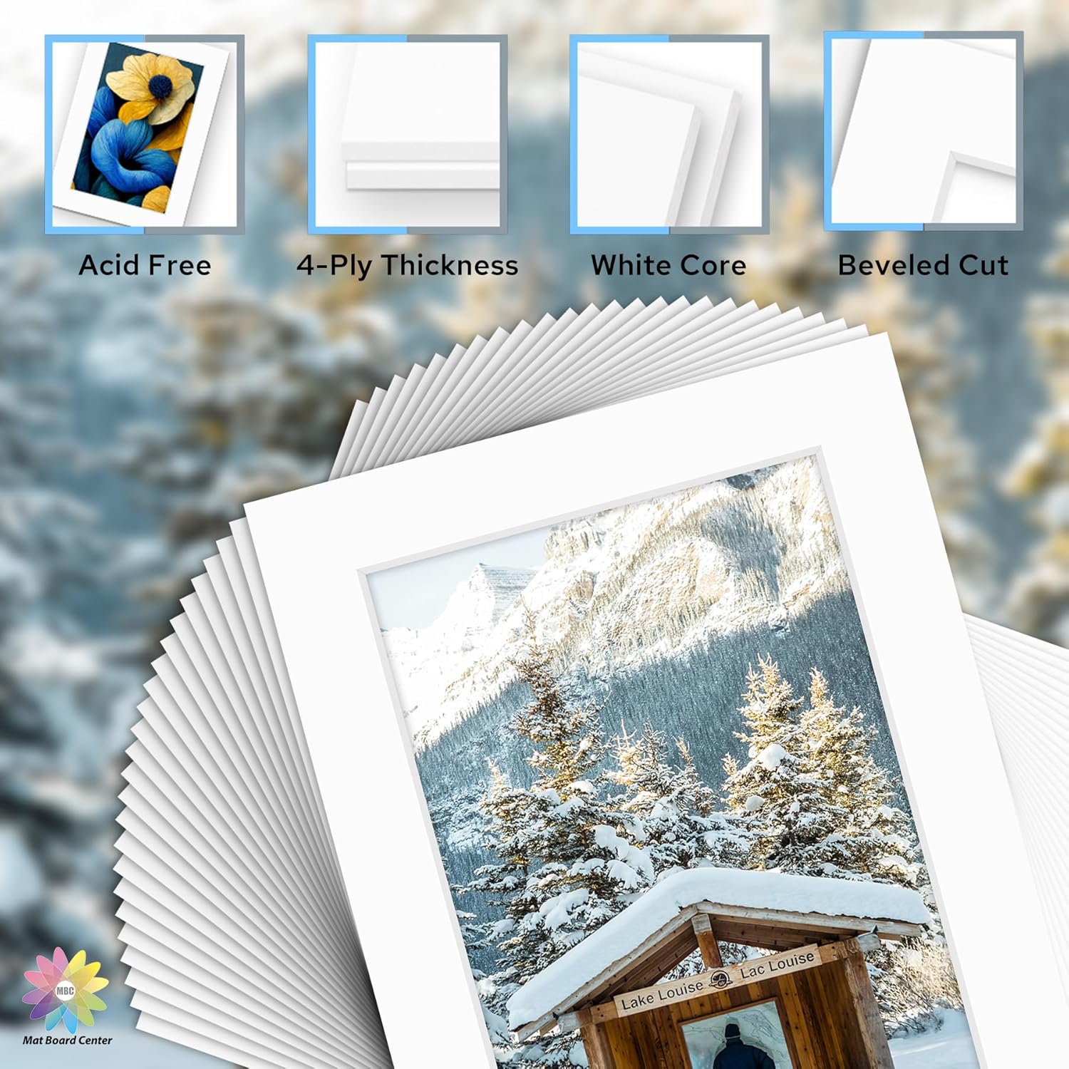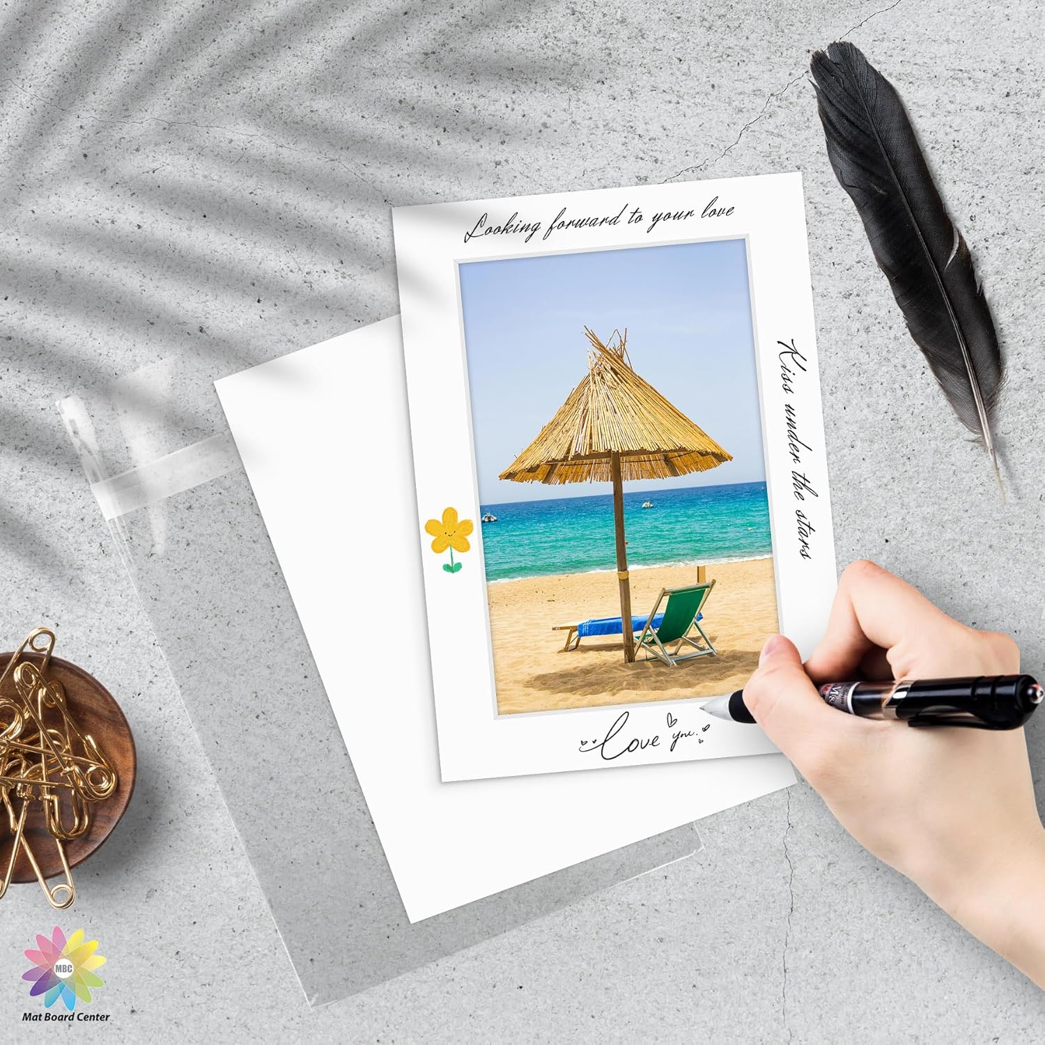 Mat Board Center, Pack of 50, 5x7 for 4x6 White Mat Kit - Acid Free, 4-ply Thickness, White Core - Includes Backing Boards and Clear Bags - for Pictures, Photos, Framing