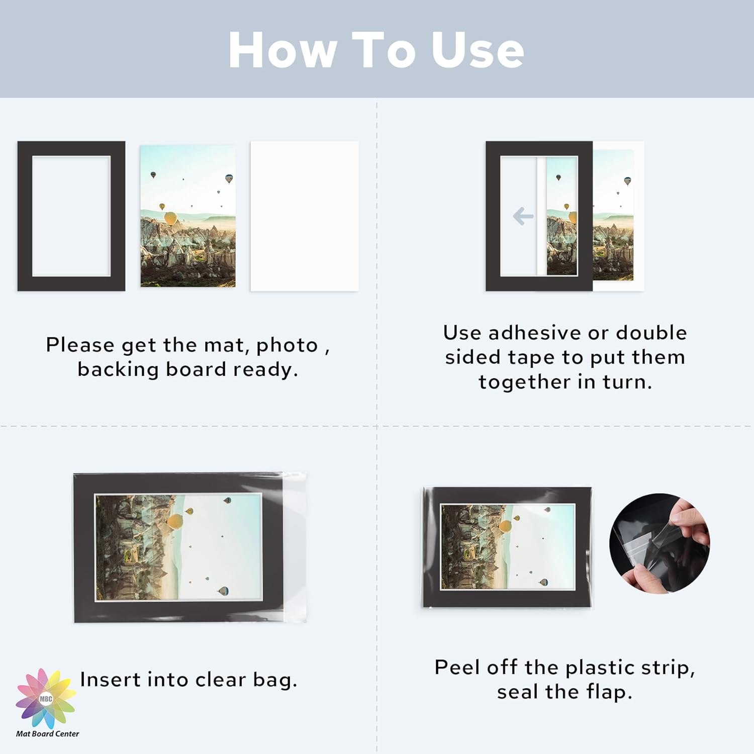 Mat Board Center, Pack of 25, 5x7 for 4x6 Black Mat Kit - Acid Free, 4-ply Thickness, White Core - Includes Backing Boards and Clear Bags - for Pictures, Photos, Framing
