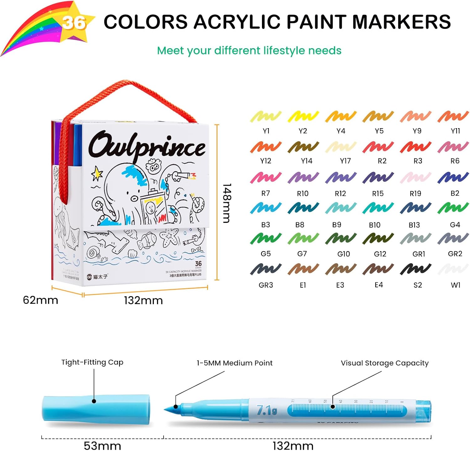 - Vibrant & Highly Pigmented: Mooking 36 colors acrylic markers boast highly pigmented, opaque colors that provide excellent coverage, even on black surfaces, and easily cover mistakes with another color. Non-toxic and odorless, the water-based ink allows for smooth layering, making it perfect for both budding beginners and seasoned artists.