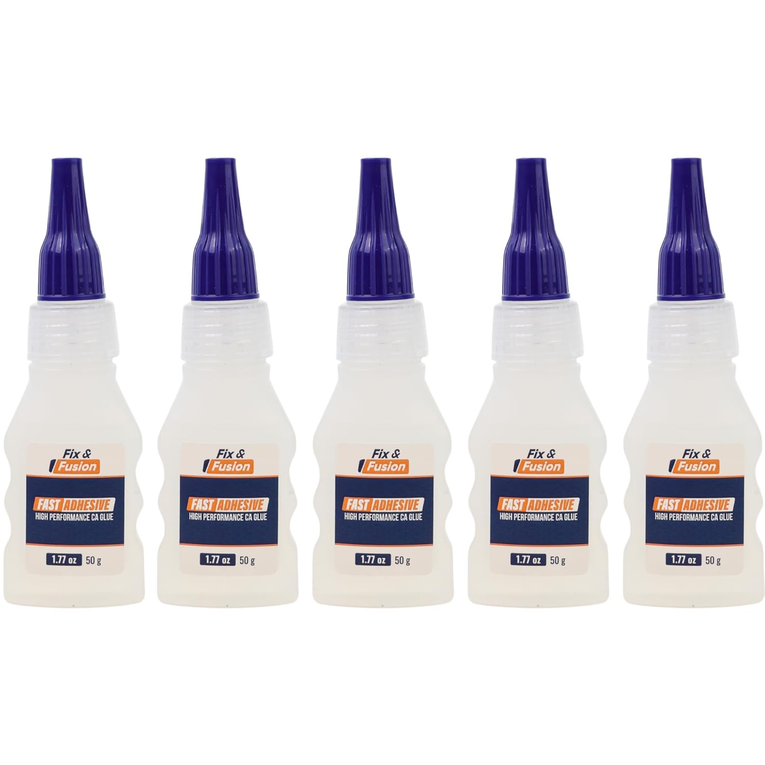 FIX & FUSION Ca Super Glue (1.77 Oz), Fast Adhesive/Cyanoacrylate Glue for Woodworking, Plastic, Rubber, Granite, DIY & Industrial, (5 Pack)