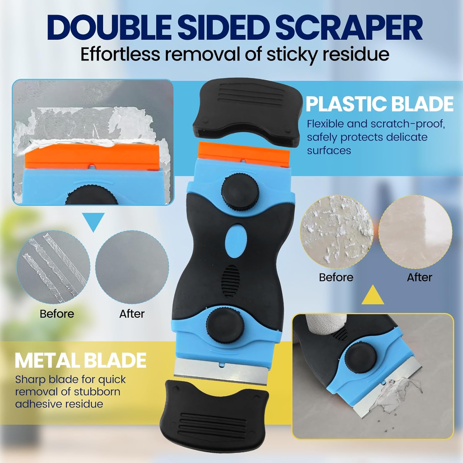 - βοΈ Superior Dual-Blade Design: Unlike basic scrapers, LUXFINISH features a dual-ended tool with a sturdy iron blade for tough residues and a safe plastic blade for delicate surfaces, delivering unmatched power, versatility, and results