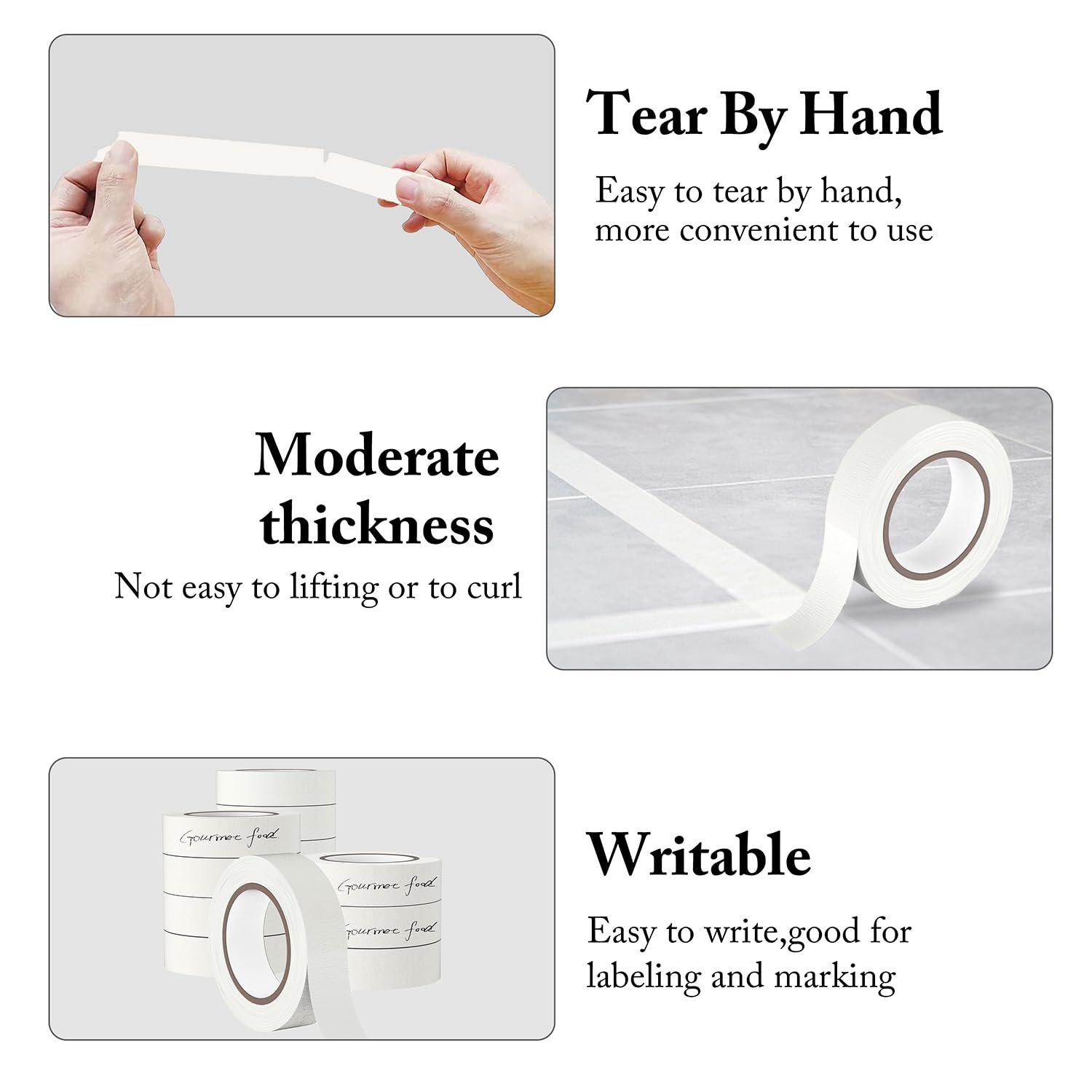 - Excellent Adhesive: White painters tapes with just the right degree of adhesion can be easily torn off. Don't worry about leaving residue of using and damaging surfaces where the tapes have been used. Bulk masking tapes can resist the sun, moisture and will not fall off easily, Available in various uses.