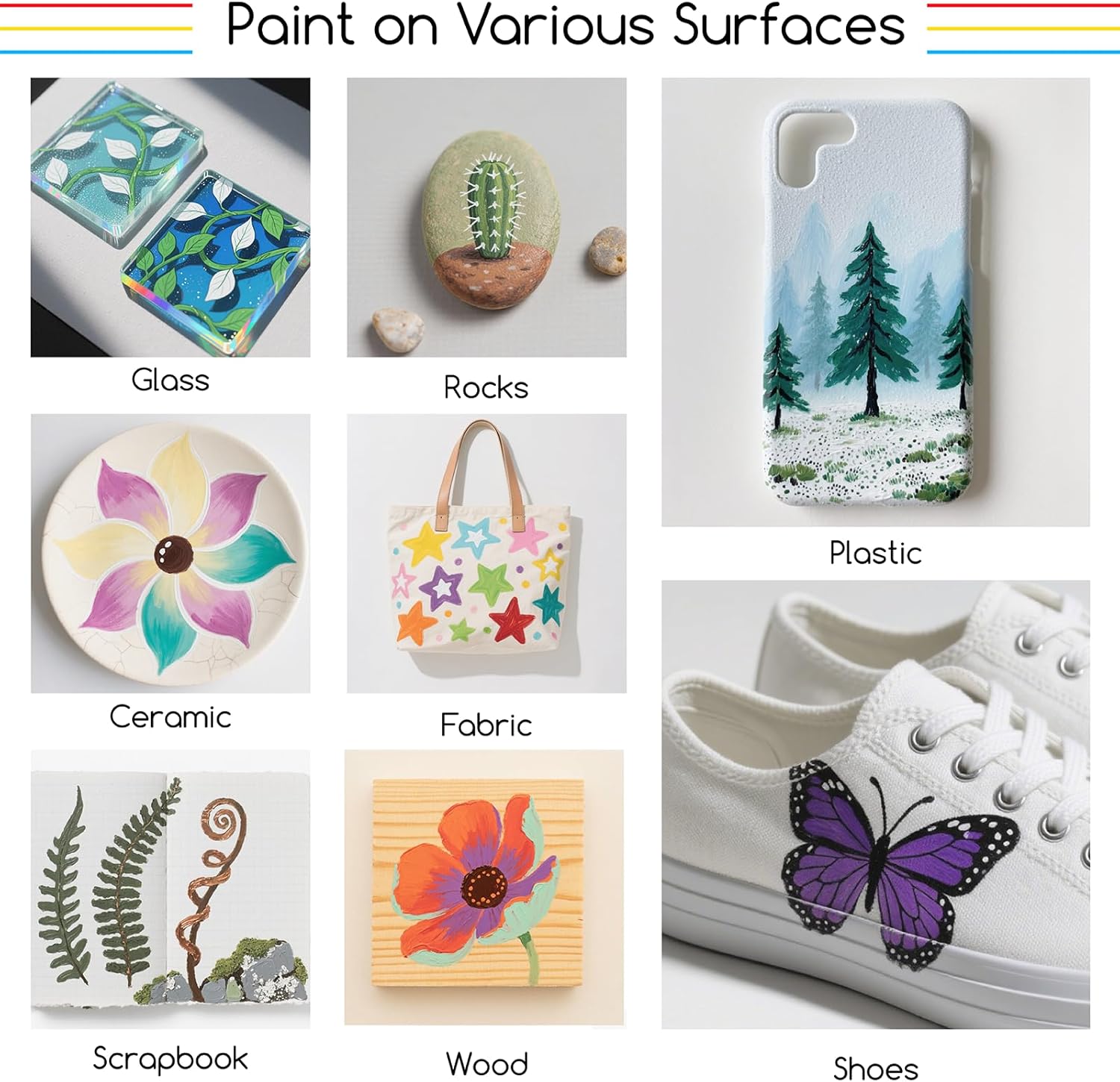 - Quick-Drying & Waterproof: Quick-dry acrylic ink no-bleeding and supports smooth layering, paint markers making your creative process faster and more efficient. Once dry, the colors stay vibrant, waterproof, and resistant to smudging or rubbing, keeping your artwork fresh over time. Perfect for decorating mugs, crafting DIY gifts, or painting on rocks, tโs a must-have in the craft supplies toolkit of kids, students, teachers, and friends