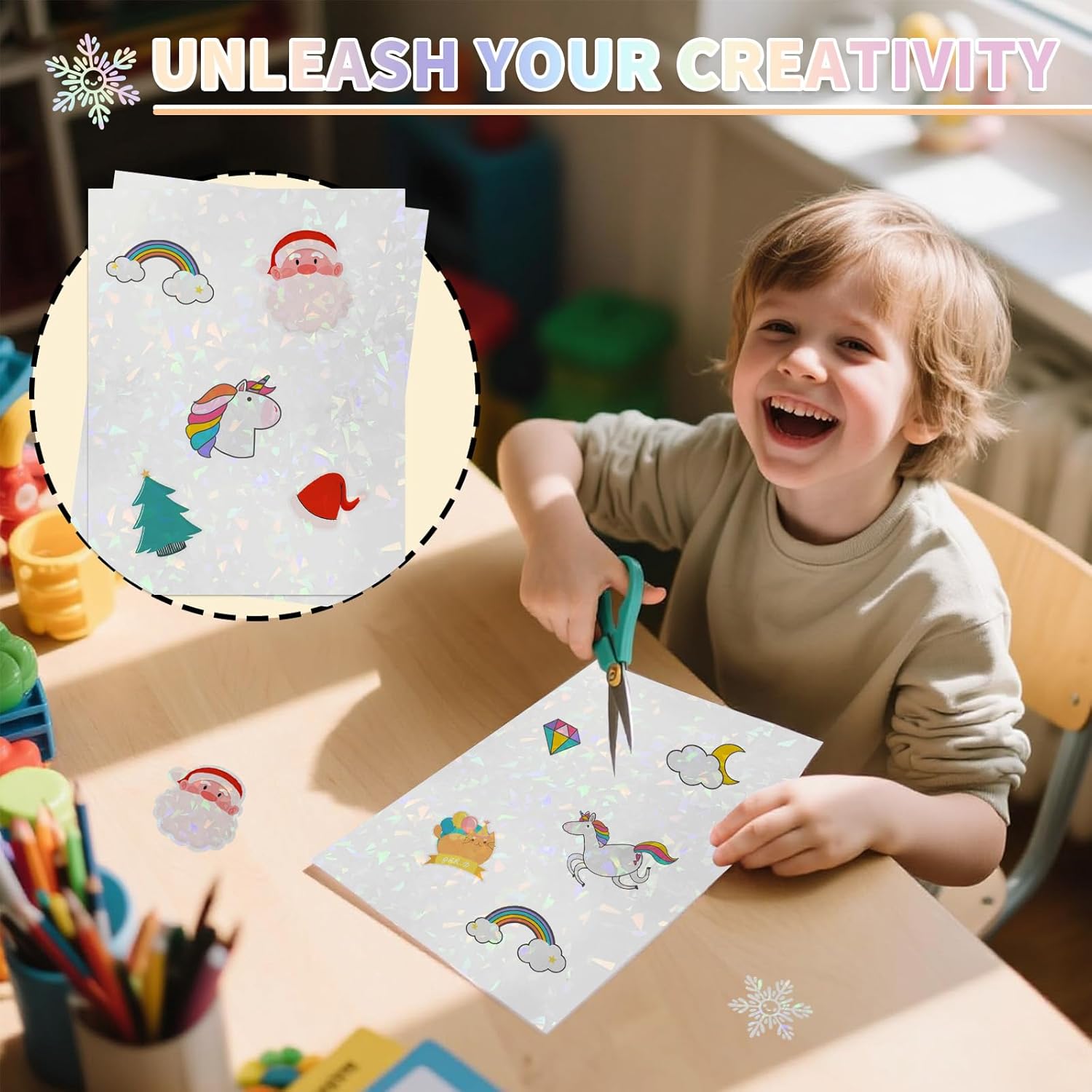 20 Sheets Holographic Sticker Paper,8.5x11 Inch Clear Printable Vinyl Sticker Papers,Self-Adhesive Waterproof for Inkjet/Laser Printer(Clear Glass)