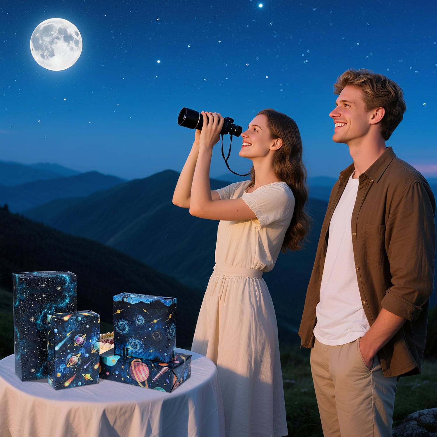 - Starry Telescope Wrapping Paper: This set includes 12 sheets of telescope gift wrapping paper, featuring 4 unique designs with 3 sheets each, allowing you to have plenty of paper to wrap presents, DIY crafts, or decorations.