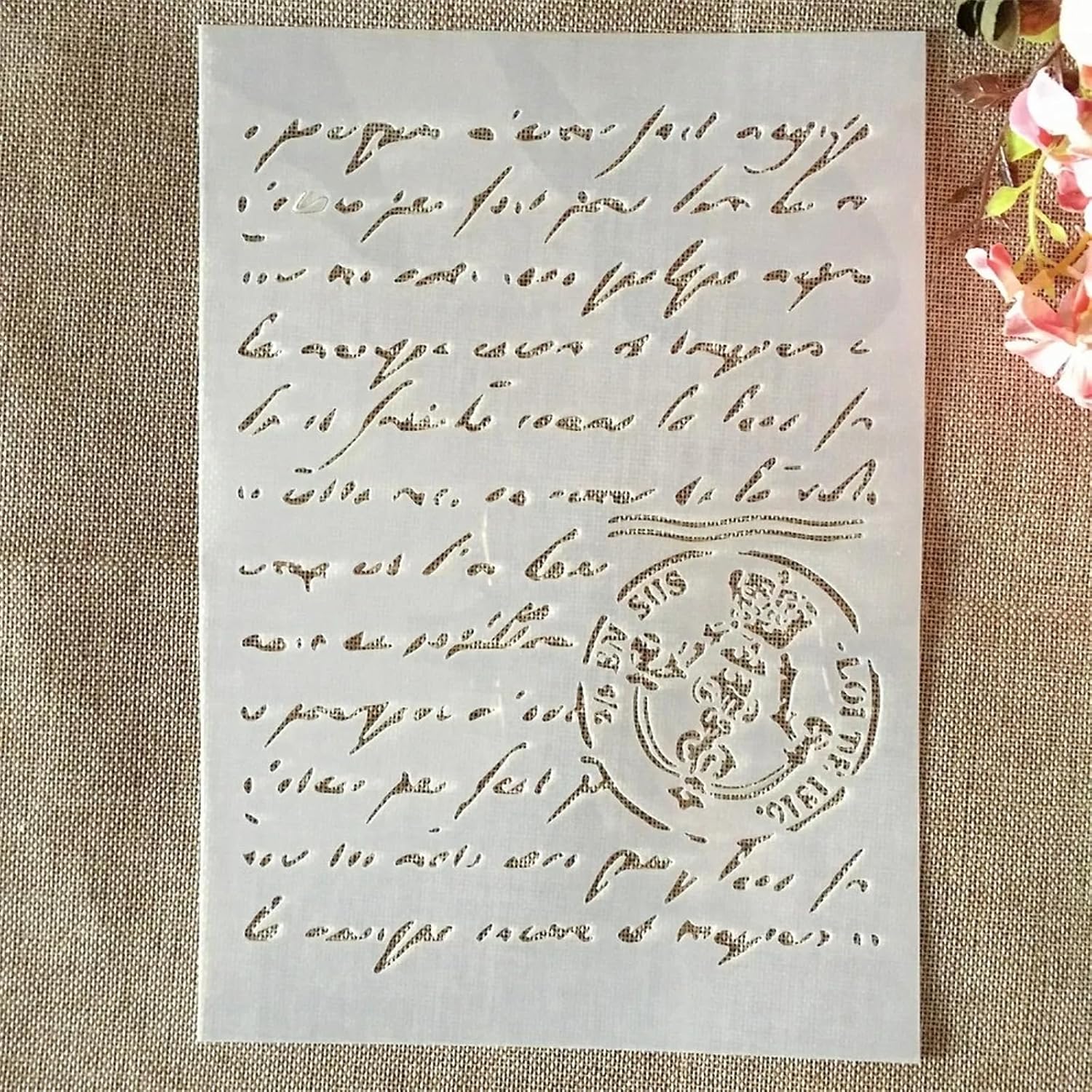 TIAMECH A4 Reusable Script Stamp Stencil for Painting - Vintage Paragraph Letters Layering Template, DIY Wall Art, Wood Furniture, Scrapbook & Crafts (8.3x11.7inch)