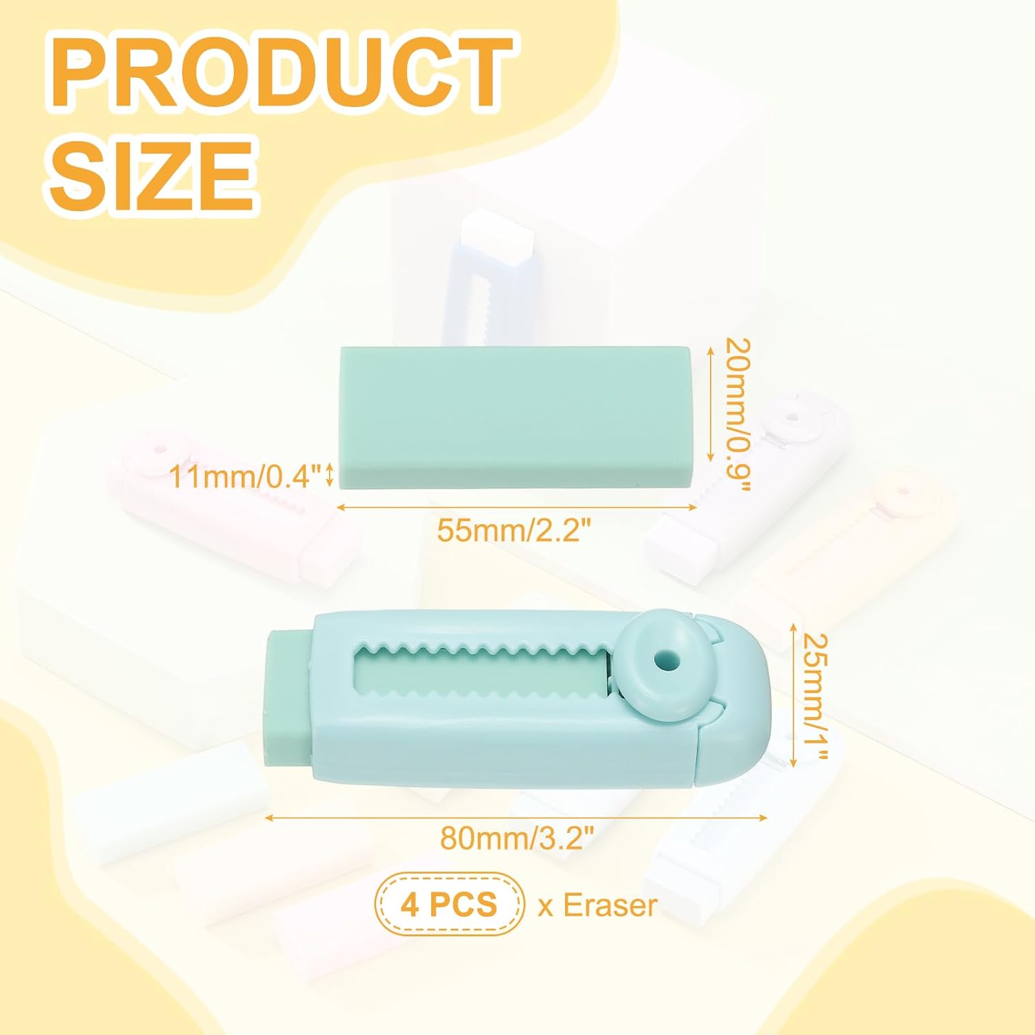 - Eraser Size: 80x25mm/3.2x1 inch; Replacement eraser size:55x20x11mm/2.2x0.9x0.4 inch; Package List:4x Erasers