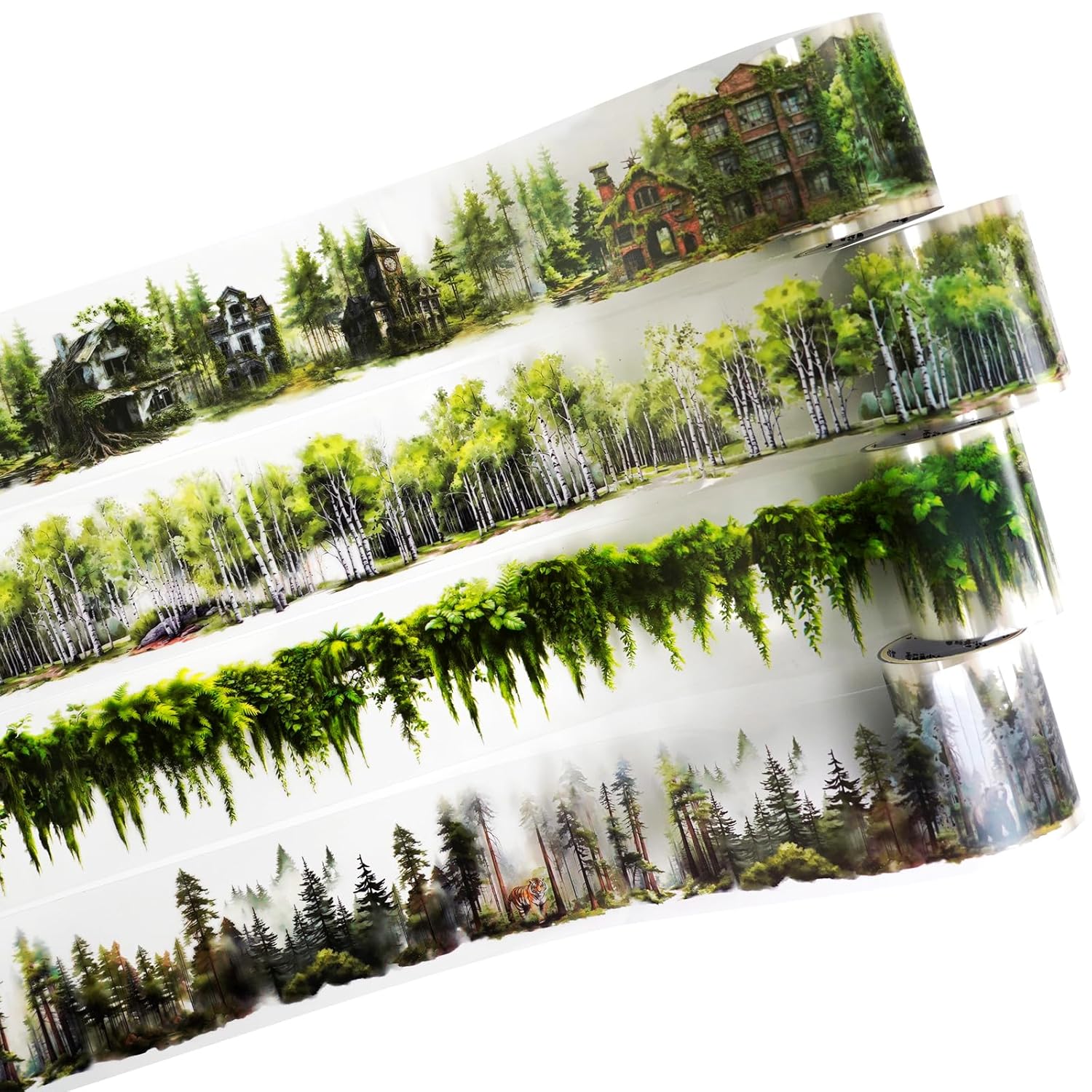 - Nature Adventure Theme: 4 rolls of PET decorative tapes with forest adventure inspired tree and landscape scenery designs bringing layered nature charm to scrapbooks and journals