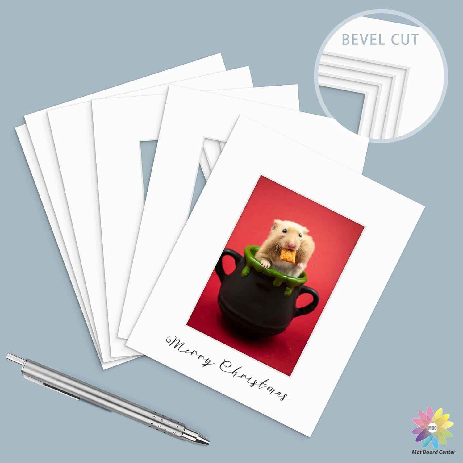 Mat Board Center, Pack of 50, 8x10 for 5x7 White Mats - Acid Free, 4-ply Thickness, White Core - for Pictures, Photos, Framing