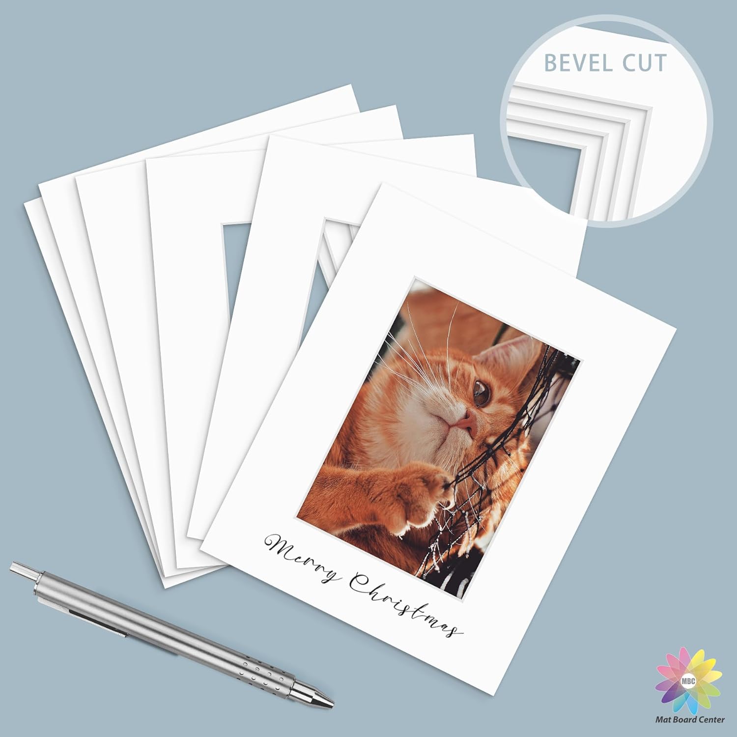 Mat Board Center, Pack of 25, 8x10 for 5x7 White Mats - Acid Free, 4-ply Thickness, White Core - for Pictures, Photos, Framing