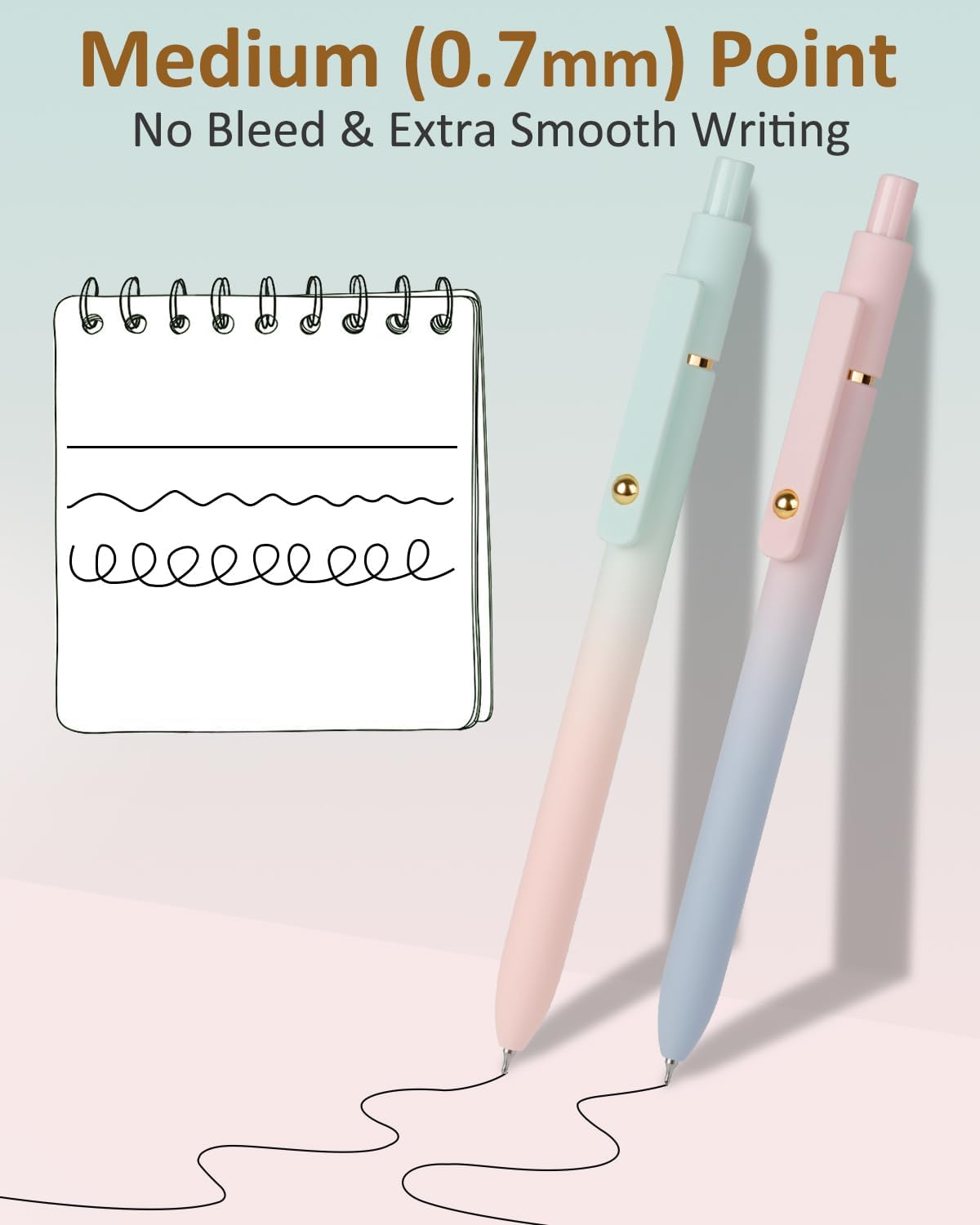 FIOVER Gel Pens, 6 Pcs 0.7mm Comfort Grip Quick Dry Black Ink Pens Fine Point Smooth Writing Pens, Cute Office Back to School Supplies Gifts for Women (12PCS Gradient Black Ink)