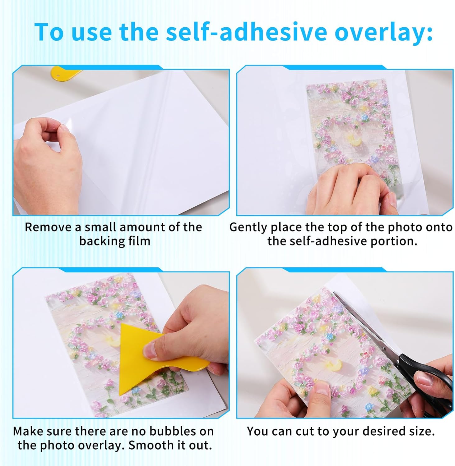 100 Pack Matte Self Adhesive Laminating Sheets, Clear Laminating Sheets Holographic Sticker Paper Clear Vinyl, Matte Finish Self Sealing Lamination Sheet, with Scraper, 8.38" x 11.8"