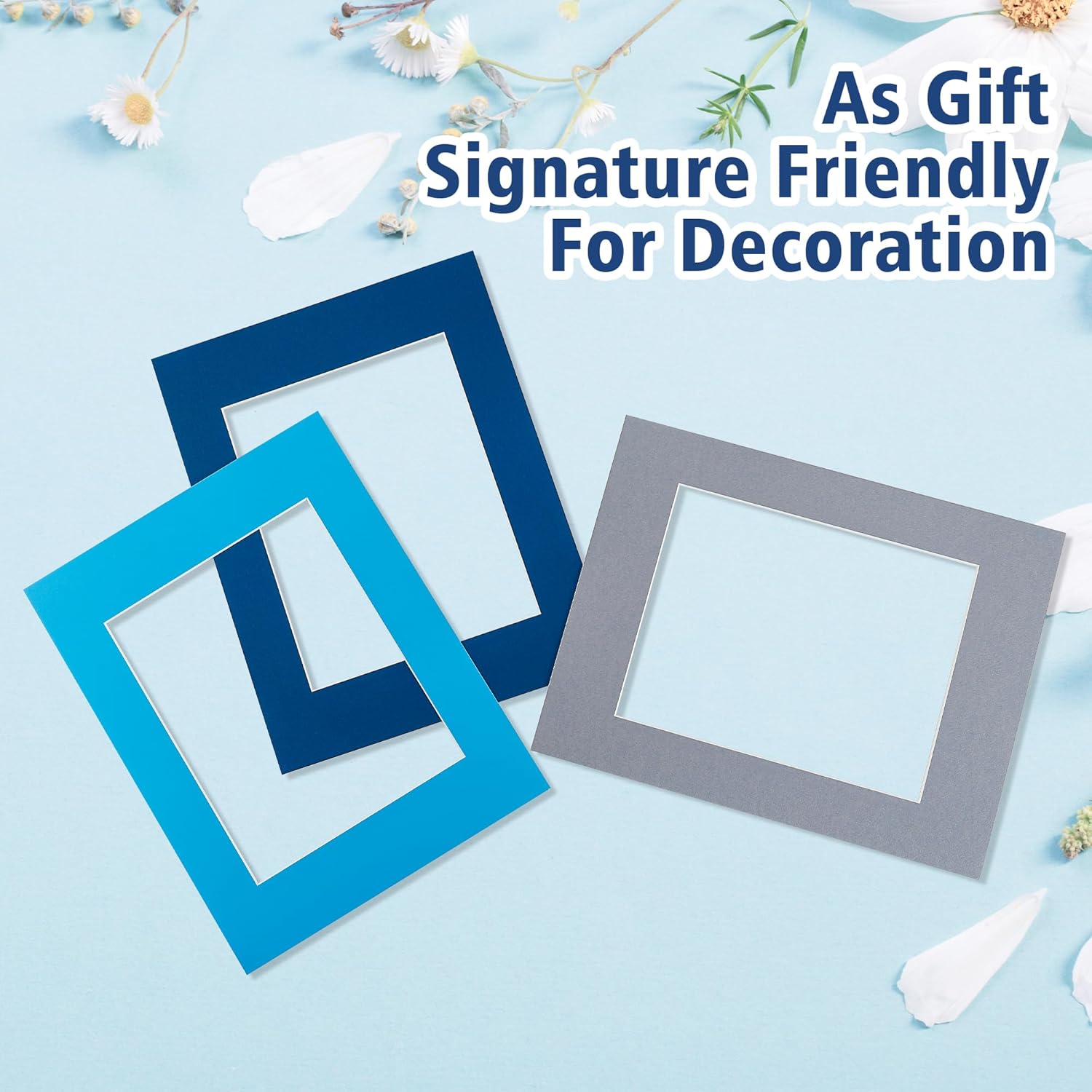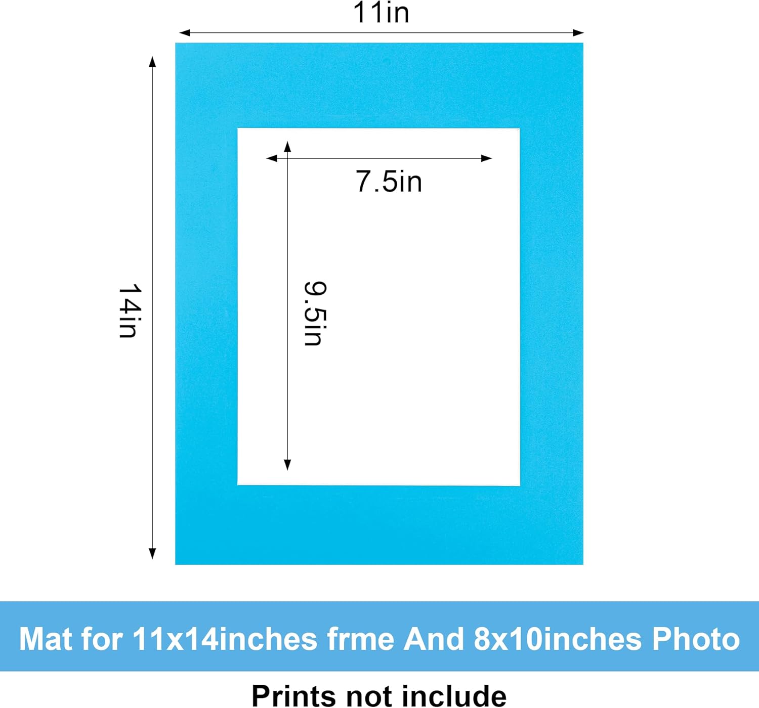 HOTUO 10 Pack 11x14 Mixed Colors Picture Mats, 4 Ply Thickness Frame Mattes for 8x10 Photo, Photo Mat with Core Bevel Cut, for Frames/Artwork/Print/Pictur(with V-Groove)