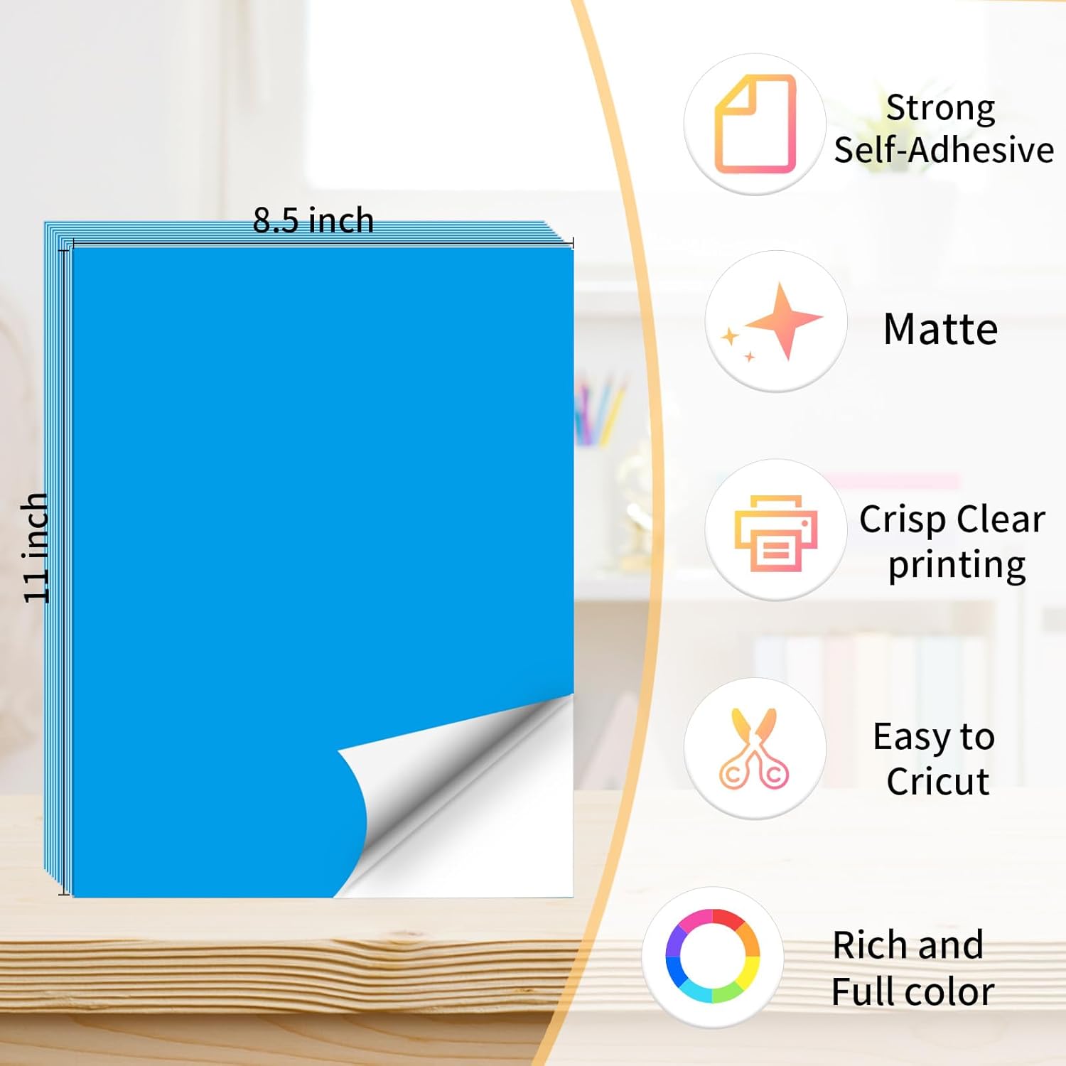 Printable Sticker Paper, 20 Sheets Blue Printable Sticker Paper, Laser/Inkjet Printing- Matte Blue, Letter Size (8.5" x 11")