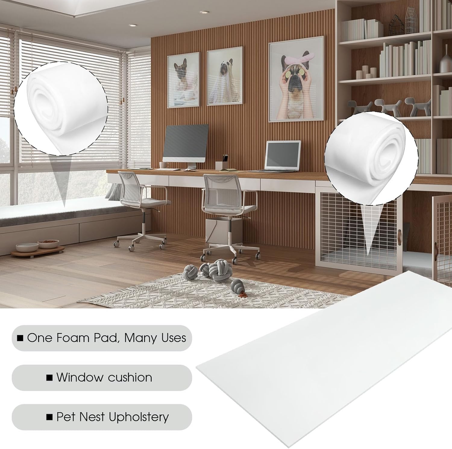 Amylove Polyurethane Foam 24" x 72" High Density Cushion Upholstery Foam Sheet for Seat Replacement DIY Projects Chairs Headboards Sofas Home(1/4" X 24" X 72",White)