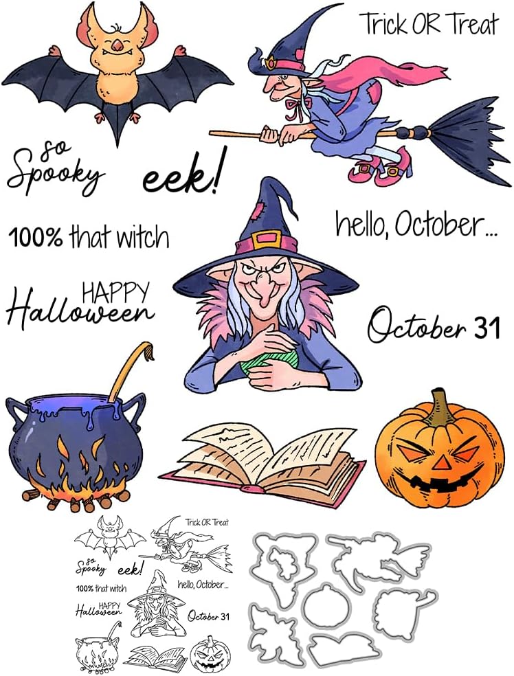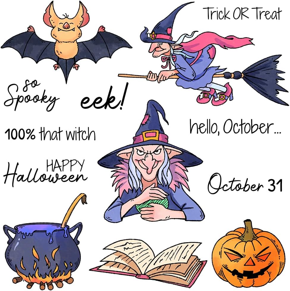 - Spooky Halloween Designs: Includes pumpkins, skulls, cats, witch hats, bats and other fun motifs. Each stamp has a detailed design, perfect for adding a festive Halloween touch to cards, scrapbook pages, journals, and party decorations.