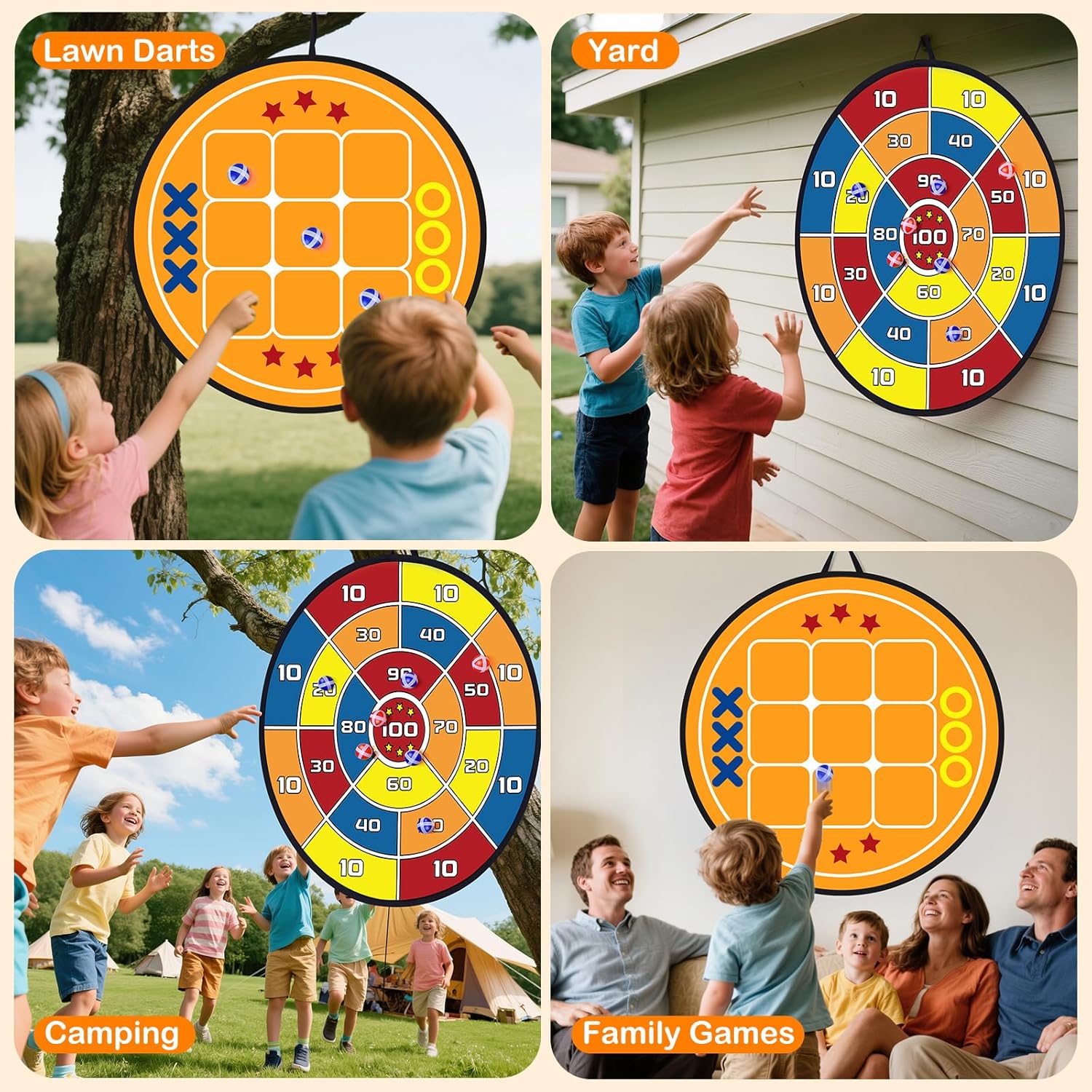 3-in-1 Dart Board for Kids and Adults,Sticky Tic Tac Toe Dart Game for Indoor Wall,Outdoor Games for Adults and Family,Kids Games Boys Toys Birthday Gifts for 4 5 6 7 8 9 10 11 12 Year Old Boys Girls