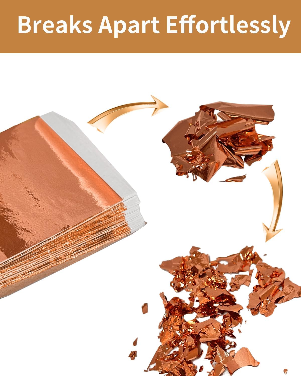Luckymica Gold Leaf Sheets, 100 Pcs Adequate Gold Foil Sheets for Arts, Crafts, Decoration, Gilding, Paints, DIY, 5.5" x 5.5", Rose Gold, U03