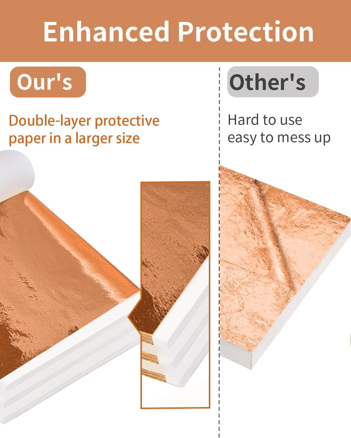 - INNOVATIVE DOUBLE PAPER PROTECTION: Unlike other brands that use just one protective sheet over their foil, ours features a unique double paper shield—layered above and below the gold sheets. This reduces waste, frustration, and protects your precious foil, enhancing efficiency during your creative process