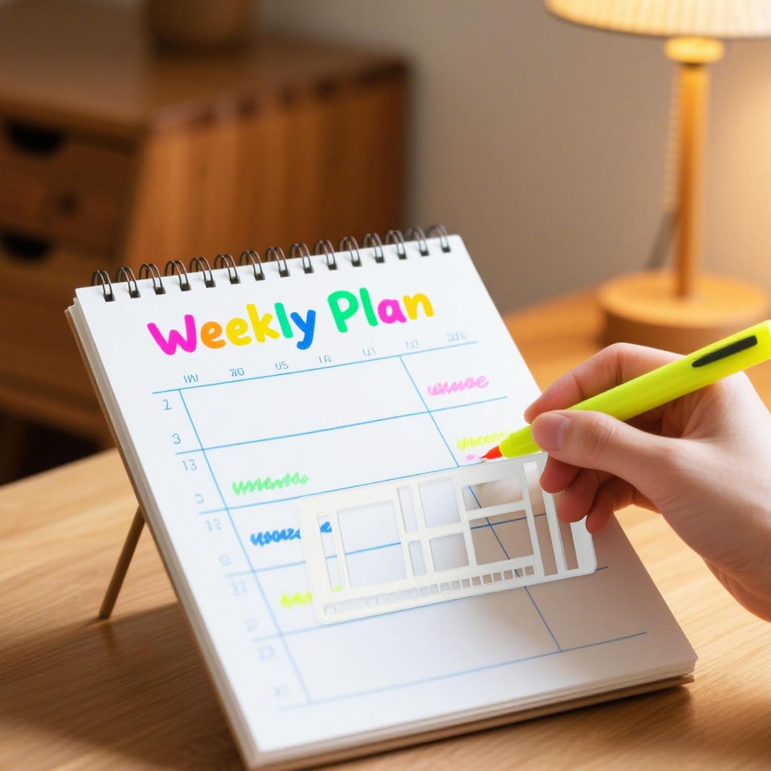 - Multiple Shapes for Versatile Planning:Includes rectangle, line, and checkbox designs, perfect for making calendars, task lists, notes, tables, and creative spreads. Ideal for bullet journaling, daily planning, scrapbooking, and DIY craft projects.