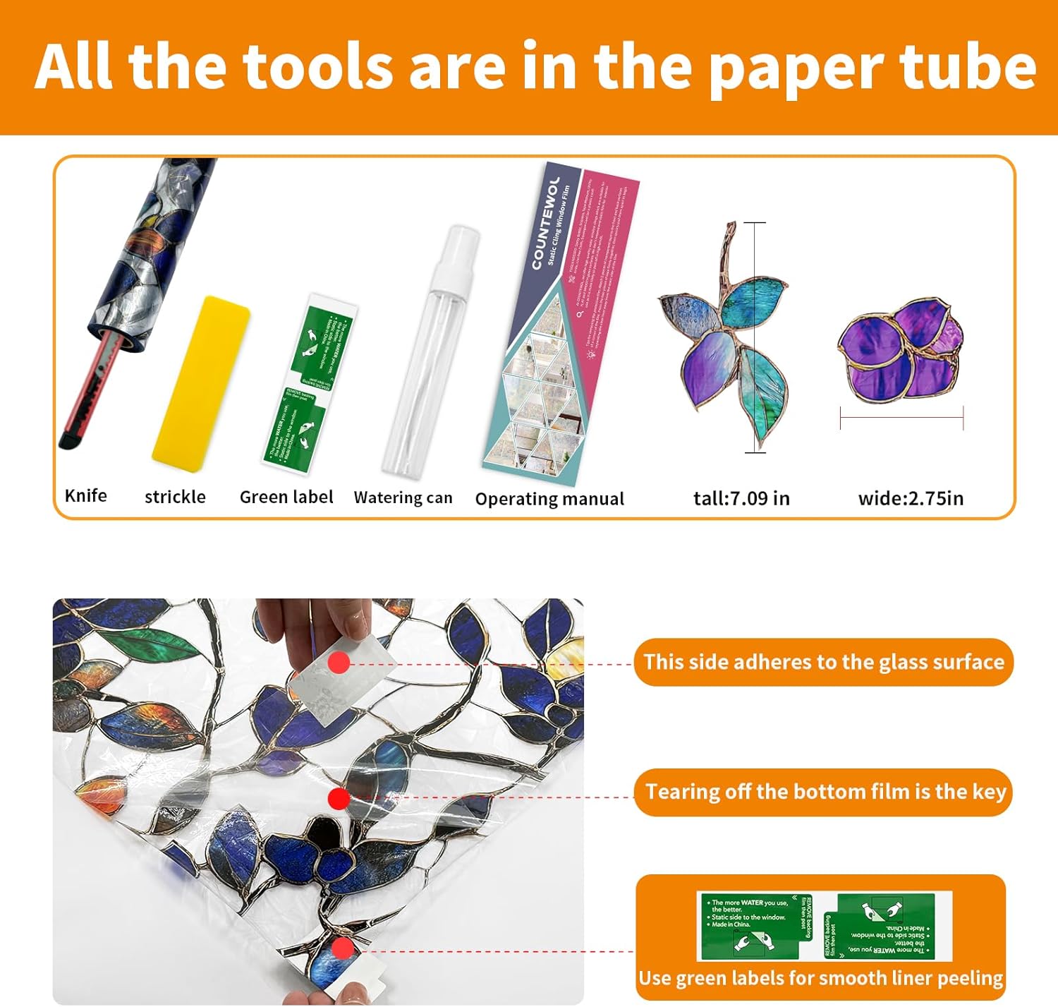 - EASY TO INSTALL: rainbow window film Tear and stick, equipped with a full set of tools, quick and easy to install.