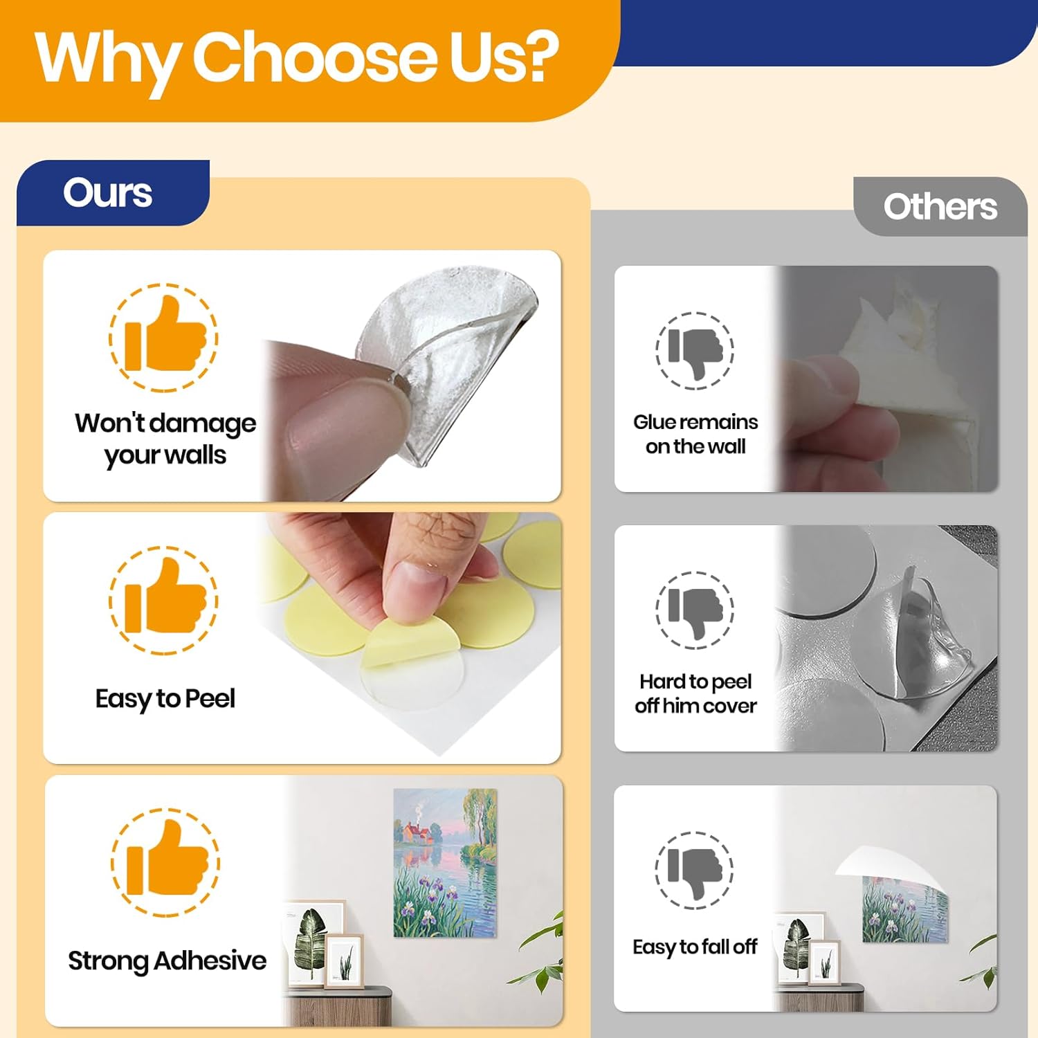 - 【EASY PEEL & NO RESIDUE】Unlike traditional glue or tape, the removable adhesive dot does not require strong cleaning tools. It can be peeled off by hand without causing damage to the walls and surfaces, allowing you to freely change the space layout