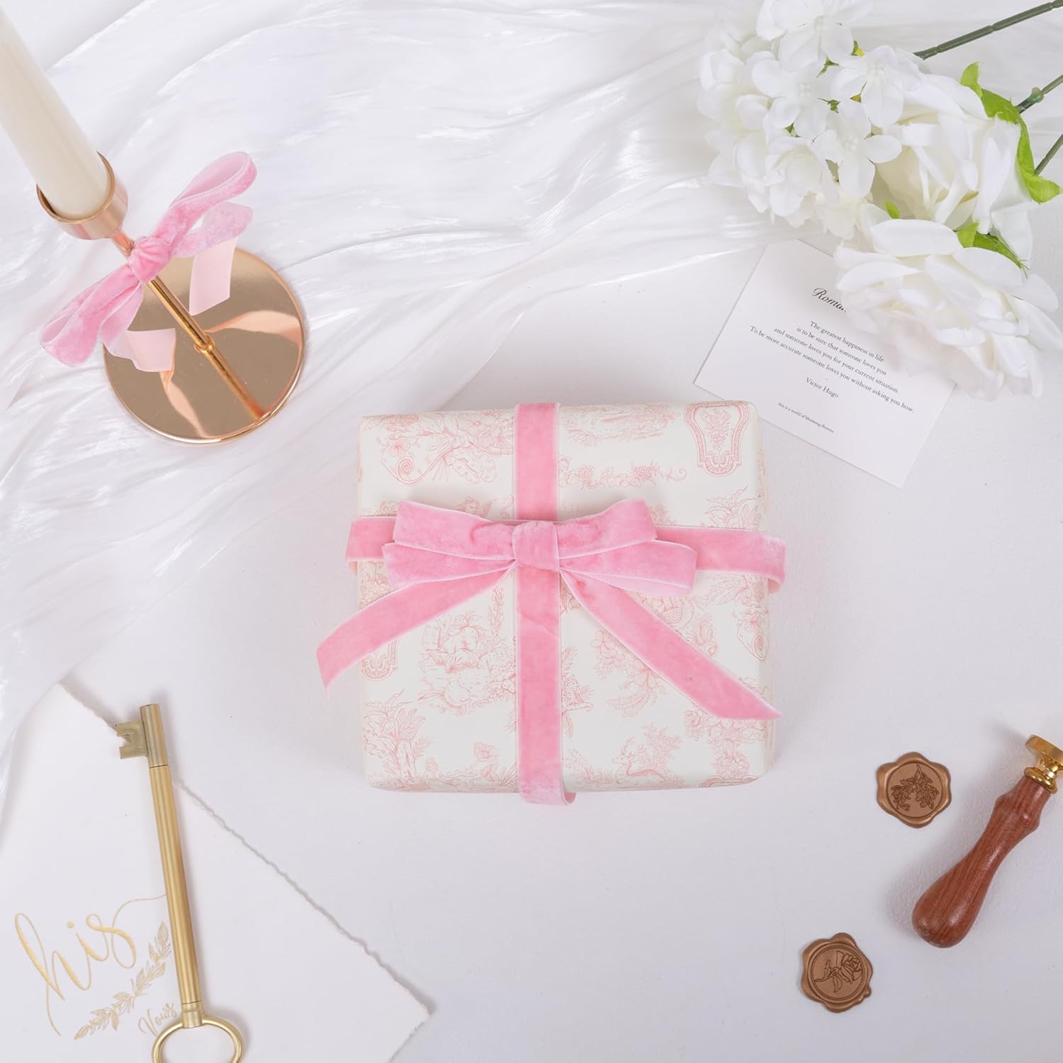 Vintage Pink Velvet Ribbon Christmas Ribbon for Gift Wrapping Crafts Christmas Tree Ornaments Garland Decorations, 5/8 Inch X 25Yd