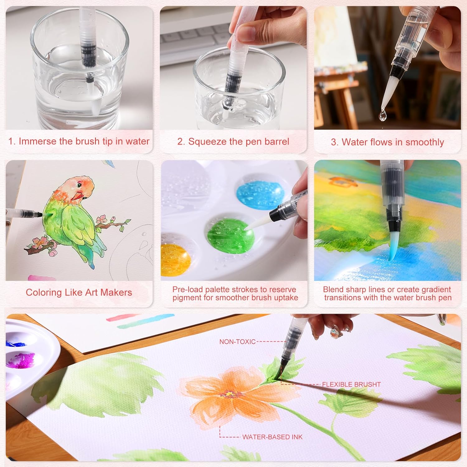 - [ Water Blending Brush for Shading ] -Toshare art kit comes with 1 refillable real brush pen. Ink blending is easy with the refillable waterbrush and allows for a wide range of expression with watercolors paints for blending, toning and drawing. Toshare refillable water brush pen can create unique visual effects, and in rendering, the advantages of smooth transitions can help accurately reproduce light and shadow, enhancing the realism and depth of the image.
