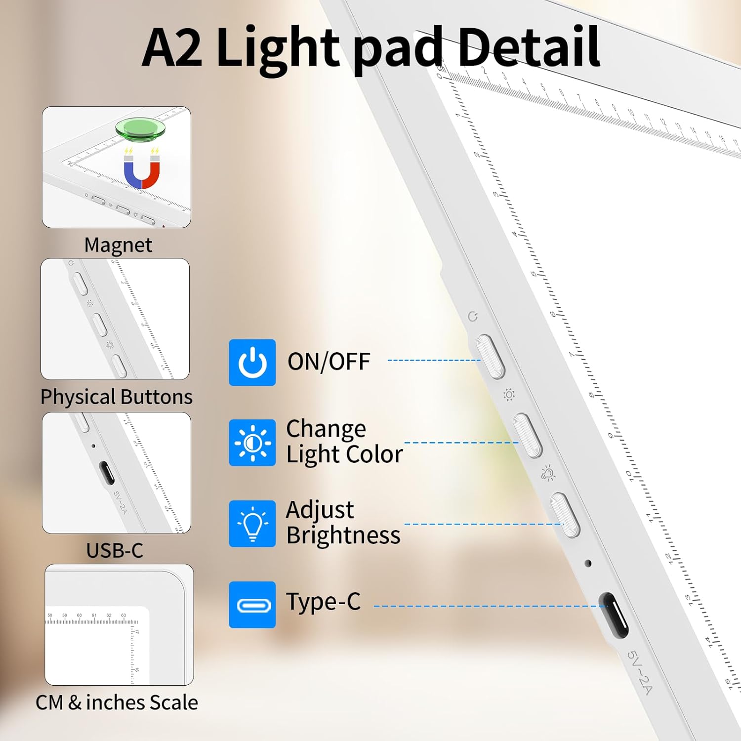 - Model Name : Magnetic A2 Light Pad with Side Buttons