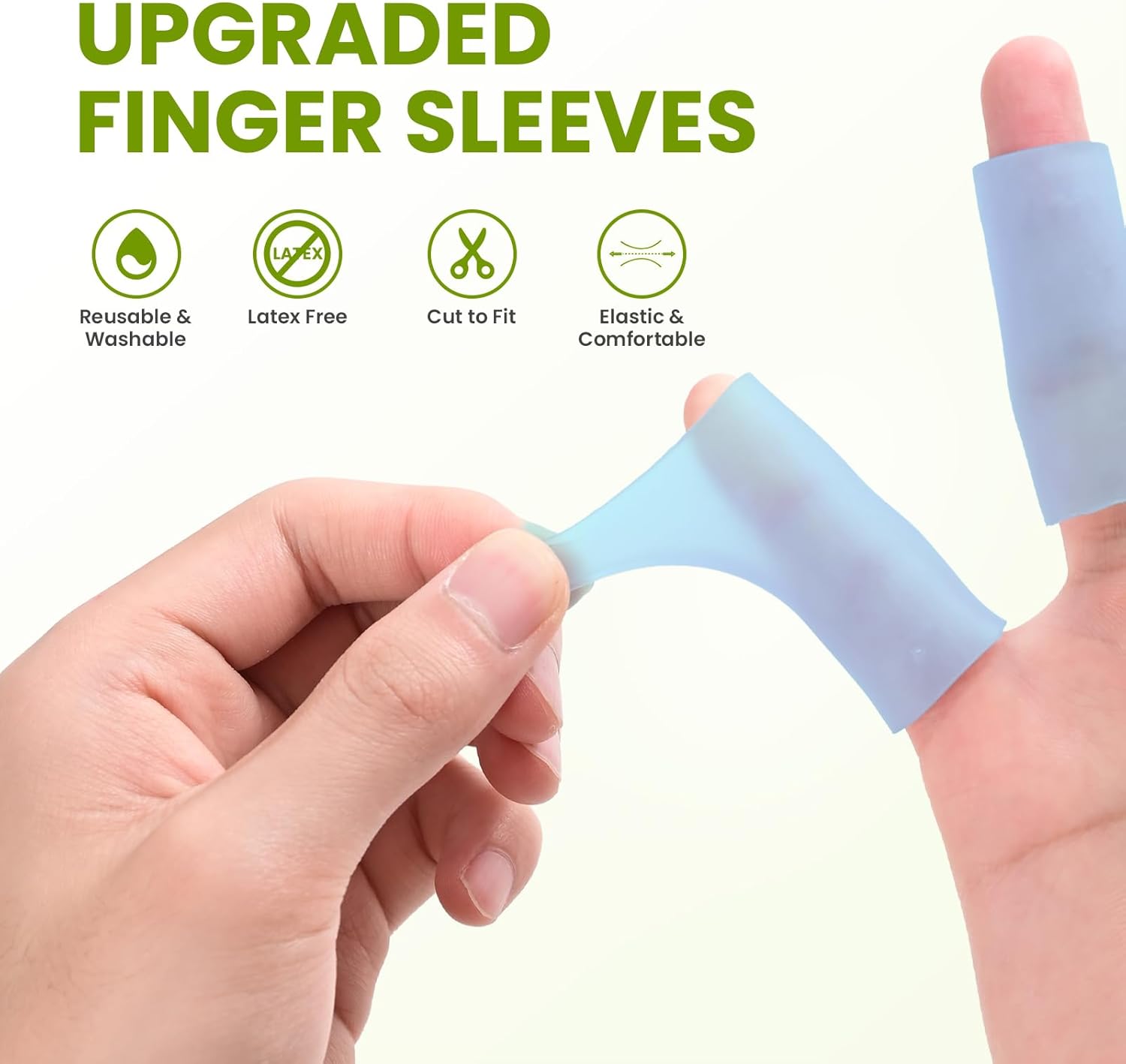 - Premium Latex-Free Silicone Material - Hypoallergenic & residue-free for sensitive skin. Reusable and washable for friendly use. Durable design resists wear while providing full-finger coverage. Ideal for pain relief and finger protection.