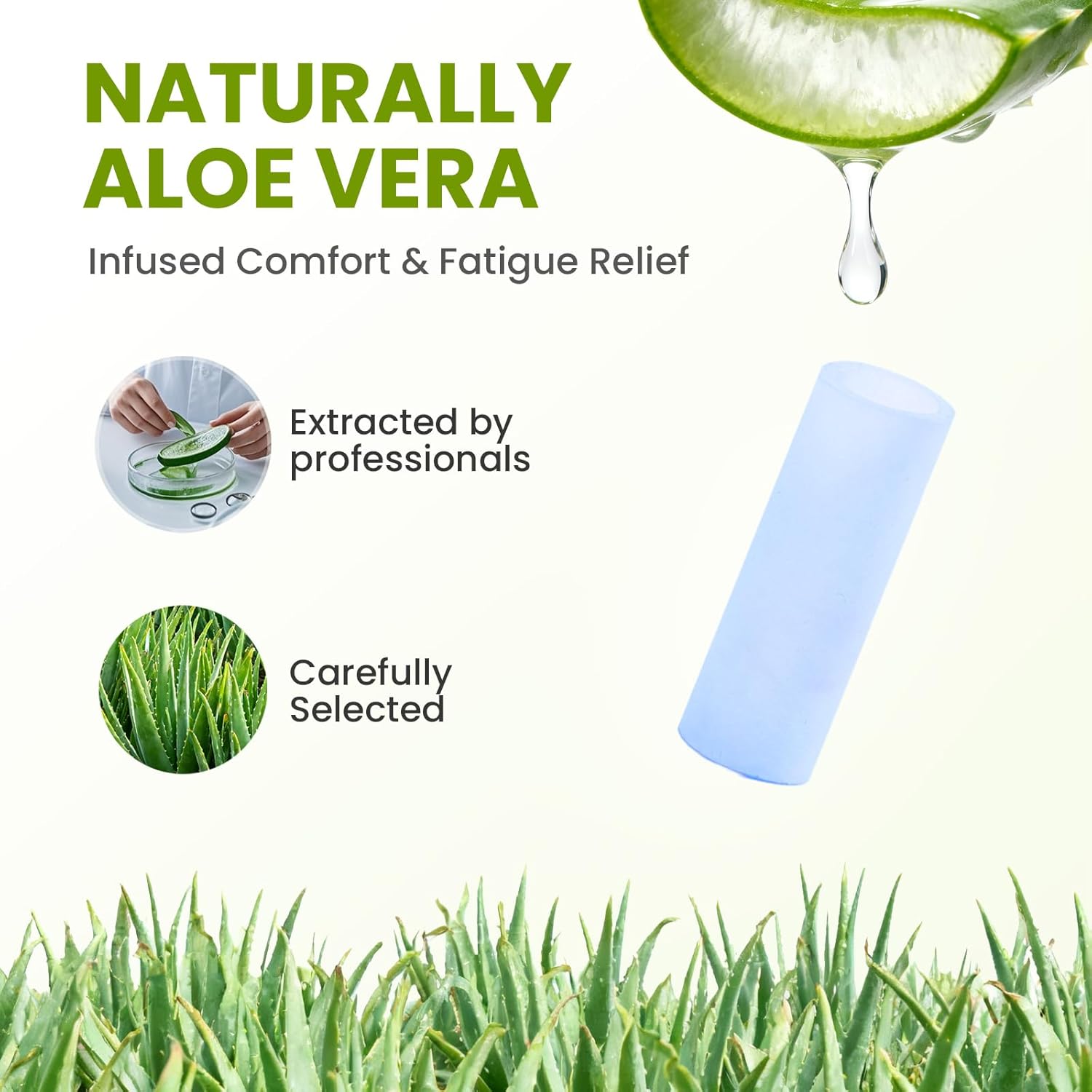 - Aloe Vera-Infused Comfort & Nourishes Skin - Naturally infused aloe vera extracts to moisturize the skin, reduce friction and soothe aching joints and muscles. Ultra-soft, flexible finger sleeve ensures no bulkiness with superior fit. Comfortable for all-day wear during typing, gaming, or crafting.