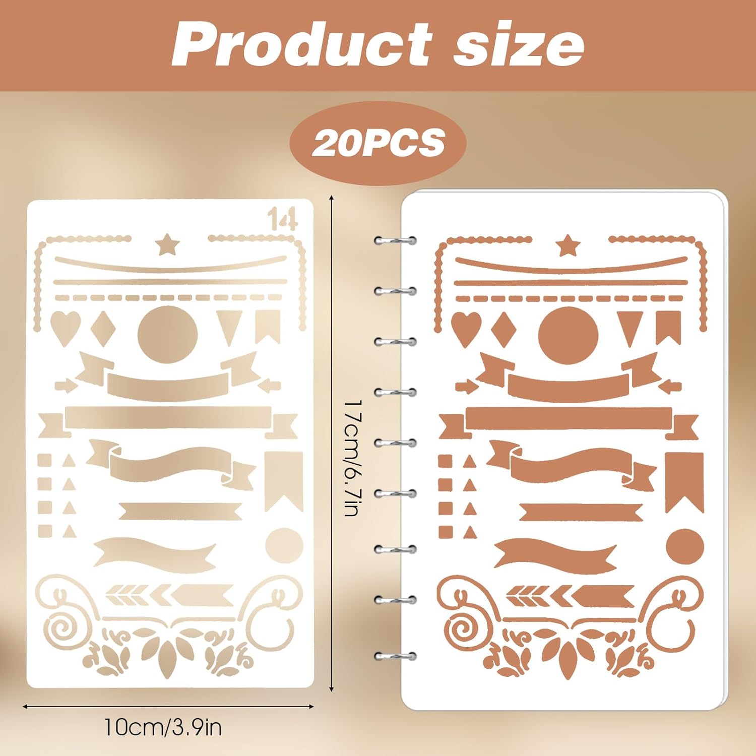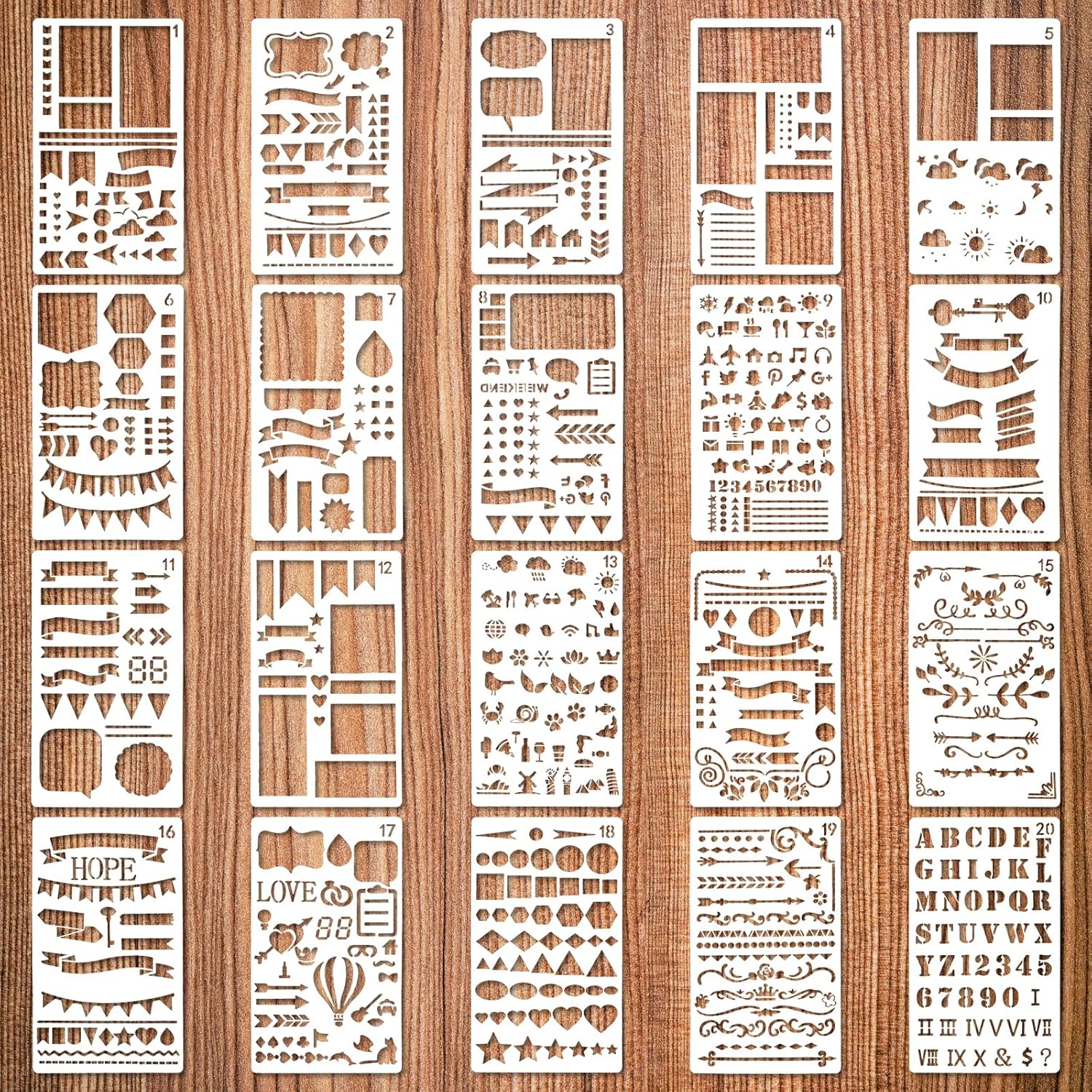 20Pcs Journal Stencils Set, Plastic Planner Journaling Stencils, DIY Drawing Templates Accessories Kit for Notebook Cards Scrapbook, Reusable Productivity Journals Supplies