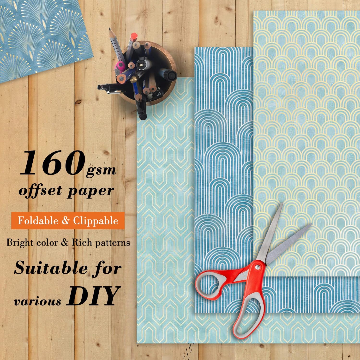 - Exquisite Material - The decorative craft pages are printed on high-quality 163gsm offset scrap book paper, lignin-free, acid-free. They are smooth in surface and clear in pattern. With unique patterns blue theme. These beautiful background papers can be cut and folded, which is very suitable for making Collage and DIY origami crafts in junk journals.
