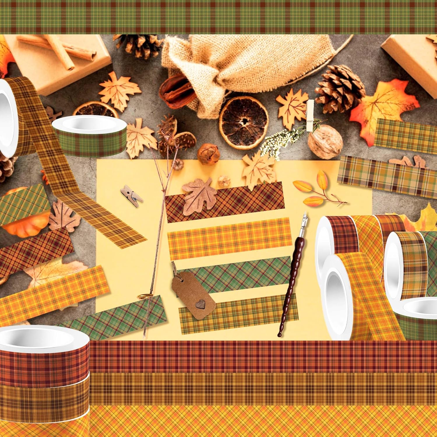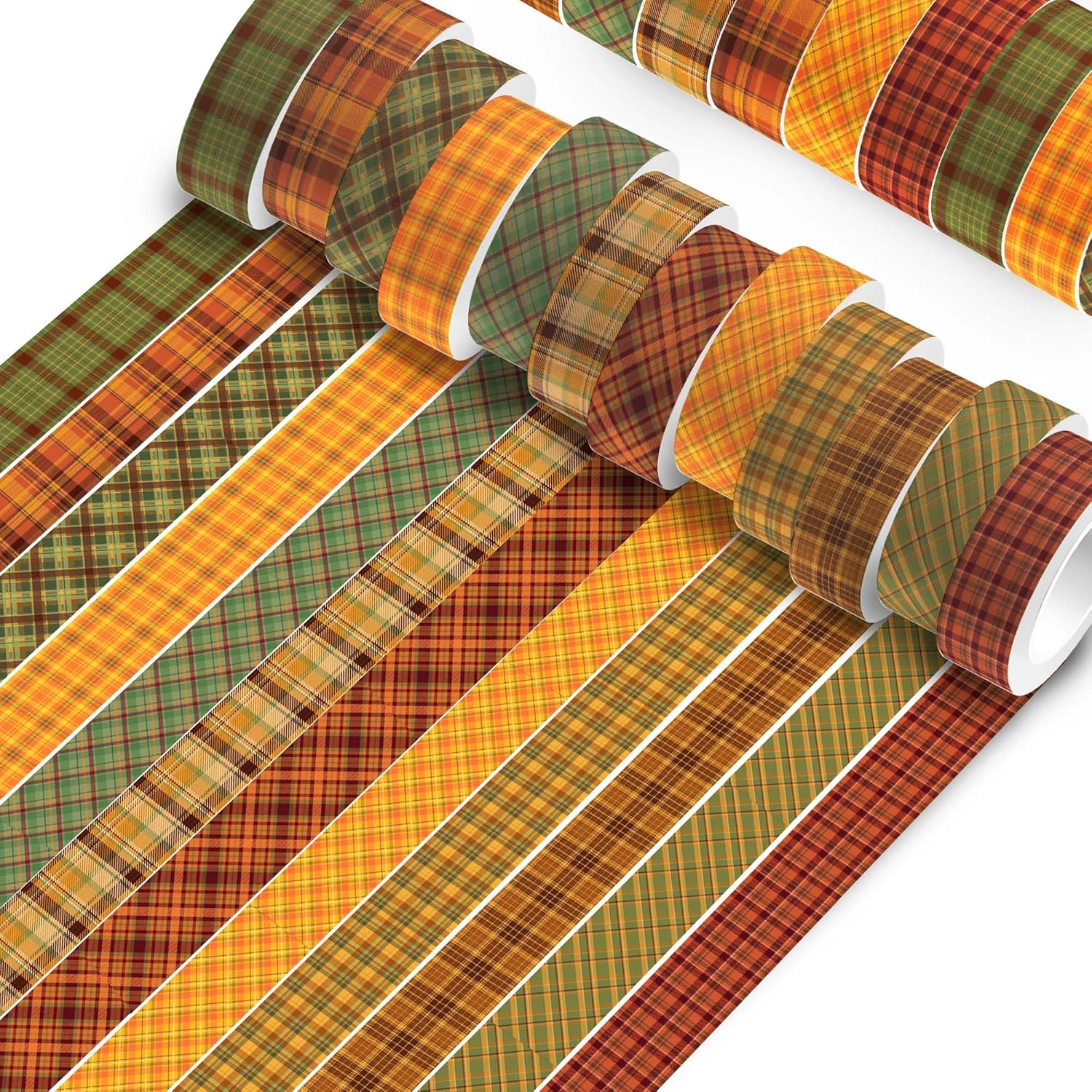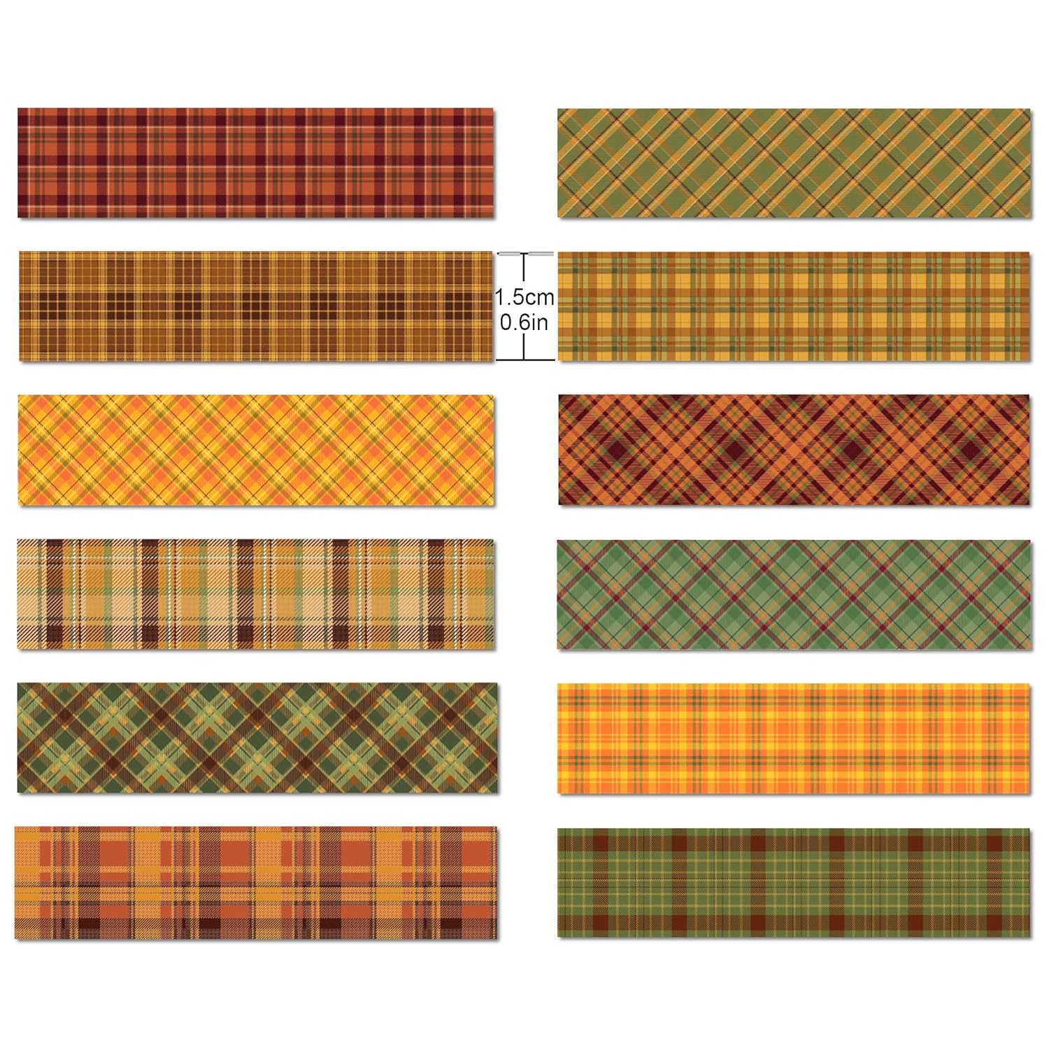 12 Pcs Thanksgiving Washi Tape Plaid Pattern Masking Tape Decorations Thanksgiving Decorative Paper Sticker for Vintage Journals, Planners, DIY Craft Gift Wrapping