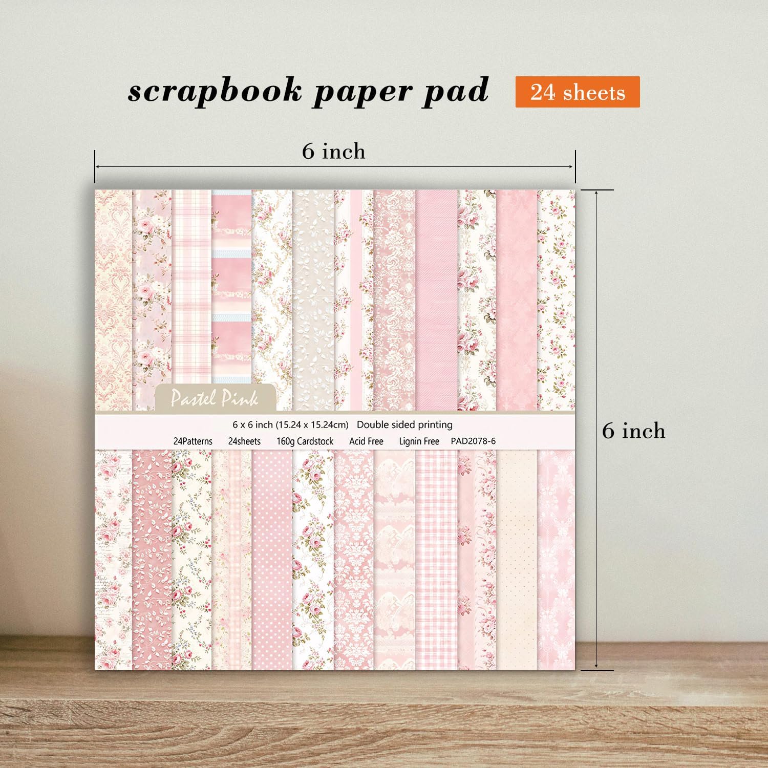 - VALUE SET - The 24 sheets sweet pink scrapbook paper pad collection includes 12 different design, 2 sheets for each design.The size is 6in x 6in(15.24cm x 15.24cm). The unique aesthetics design of colorful patterns is suitable for making cards and DIY projects, meeting your different artistic and decorative needs.