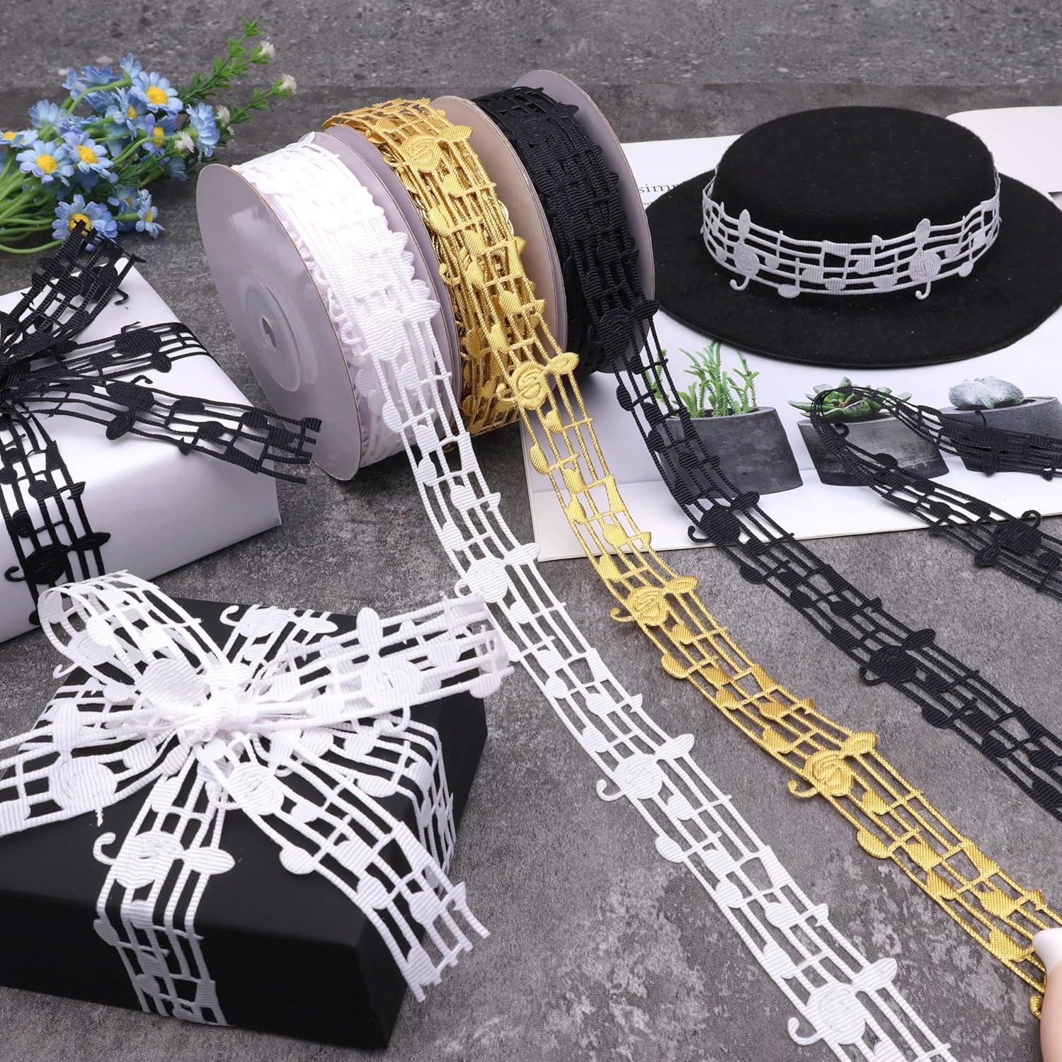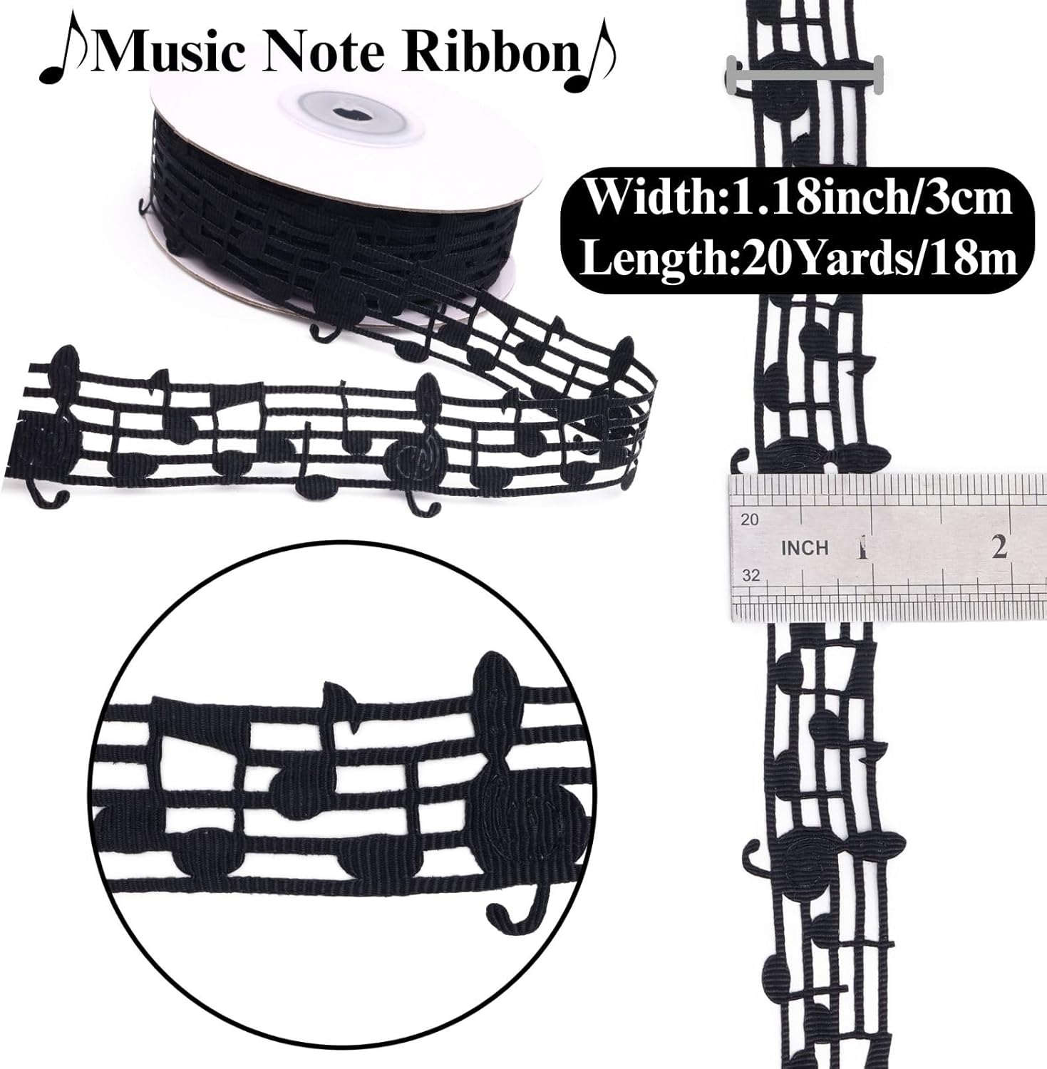 - Nylon Music Note Ribbon:Wide 1.1inch Length:20 yards use as a hair tie, gift wrap accent, or phone case embellishment.