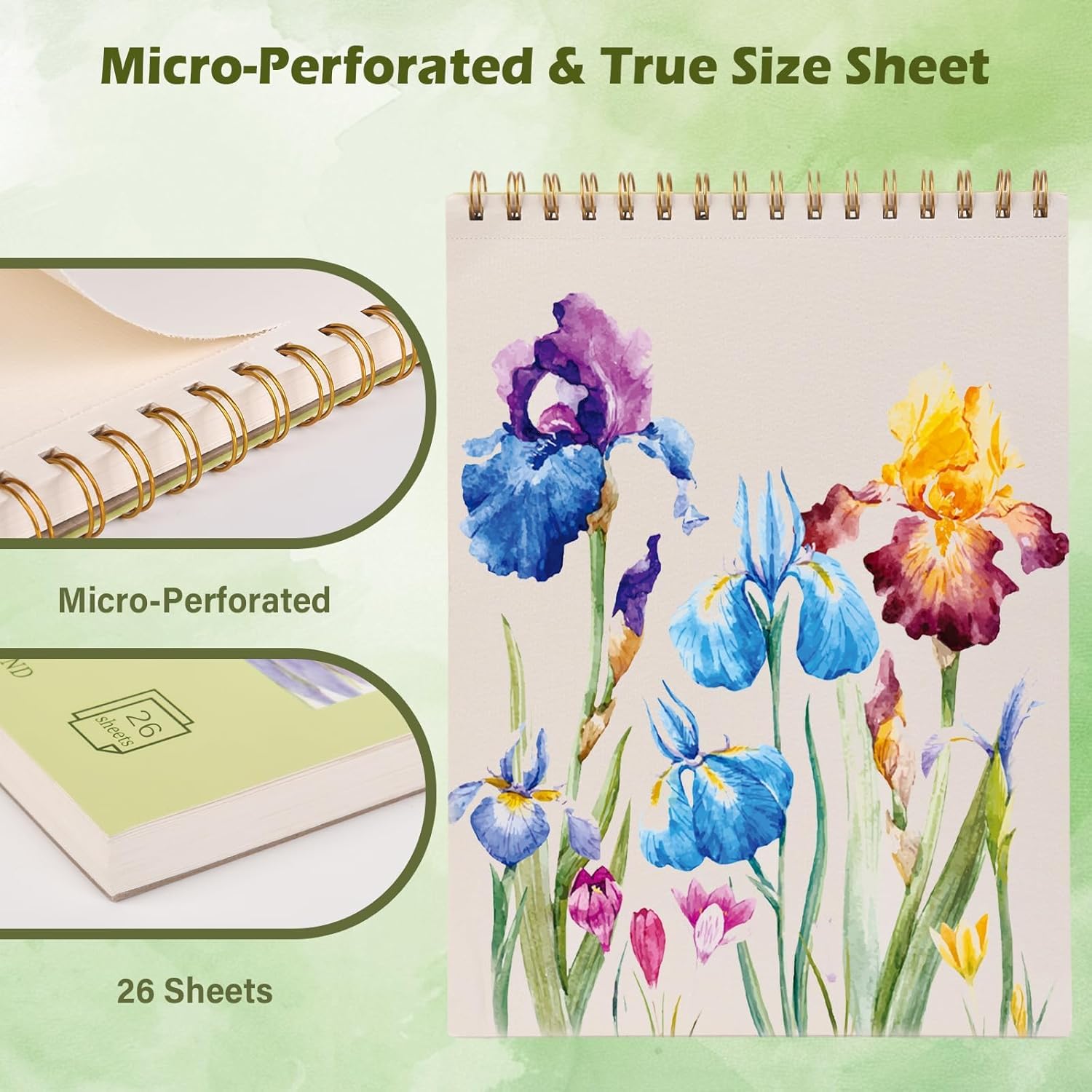 Watercolor Paper Pad 8" x11” (26Sheets, 140lb/300g), Spiral - Bound with Tear - Line. Artist-Grade Mixed Media Sketchbook- Water Color Paper for Adults Kids-Watercolor Sketches,and Art Journals