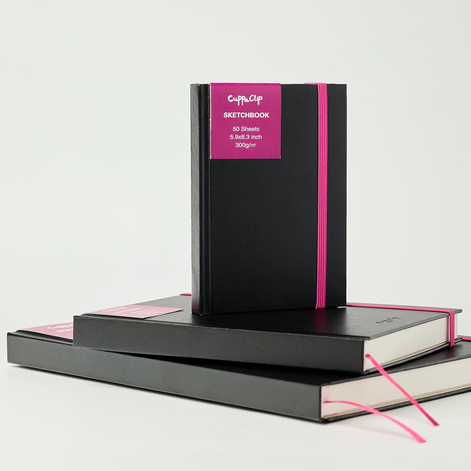 CuppaClip Sketch Book Hardcover Drawing Pad 300GSM Acid-Free Paper Spiral Bound Sketchbook 50 Sheets/100 Pages Art Supplies (Hardcover, 4x5.9in)