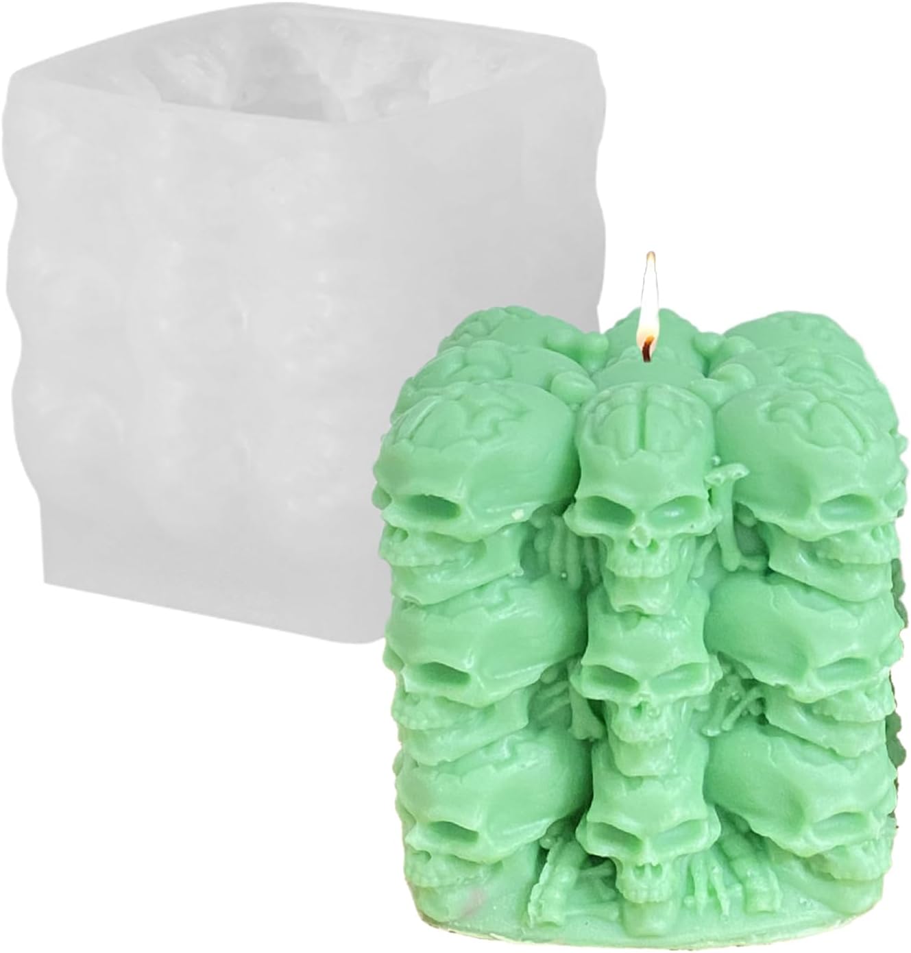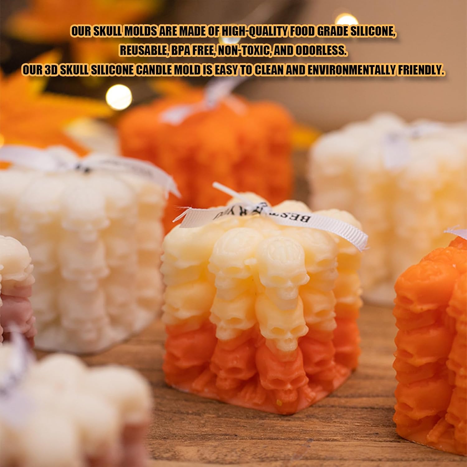 Halloween Candle Molds,1PC Cube Bubble Skull Silicone Candle Mould,3D Silicone Mold for Epoxy Resin Handmade Aromatherapy Candles Wax Soap Halloween Decor (Skul Pattern)