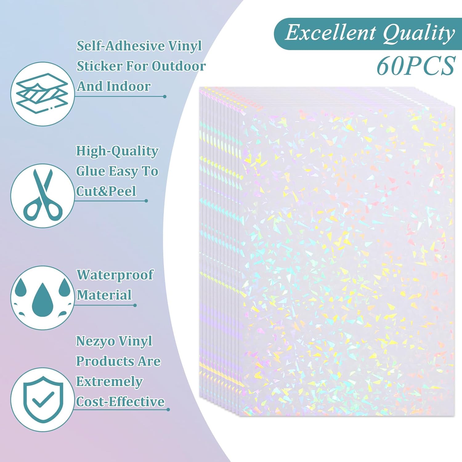 - Abundant Quantity: You will get 60 sheets of transparent holographic films in broken glass styles. These A4 holographic sticky paper sheets with the size of 11.7 x 8.3 x 0.2 inches, enough to meet your different needs. Suit to decorate your belongings with the waterproof sticker paper and make them look unique! Please note that these films are not printable, do not use them on printers.