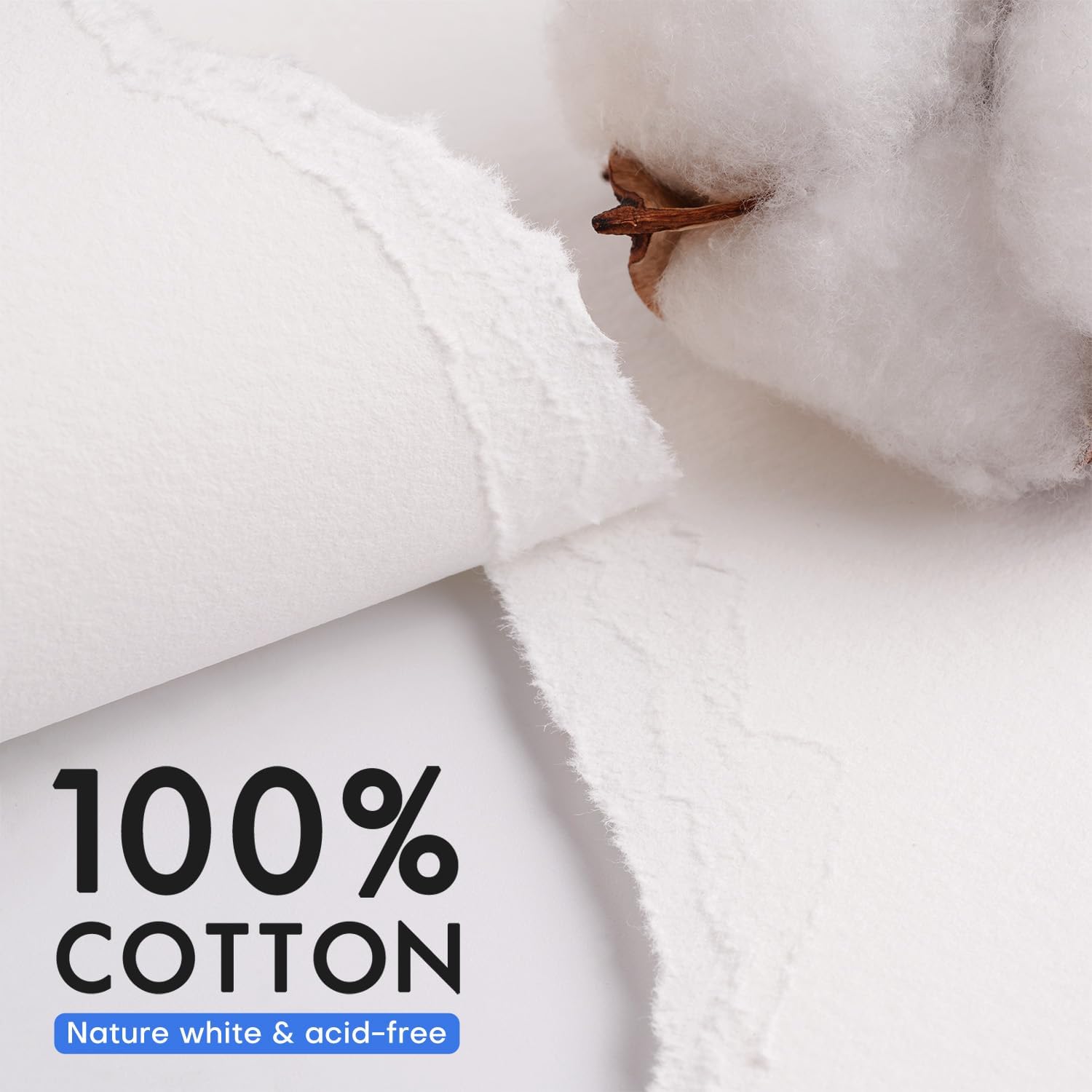 - 【Exceptional Durability & Control】Cold-pressed paper crafted with a cylinder mold process, evenly distributes cotton fibers, rubbing off or loosening fibers when applying multiple layers of color or using masking fluids and tapes for superior resistance to scratching and erasing, this design allows the paper to slacken uniformly when wet, offering outstanding control for experimenting with different strokes and techniques, bringing your creative visions to life.