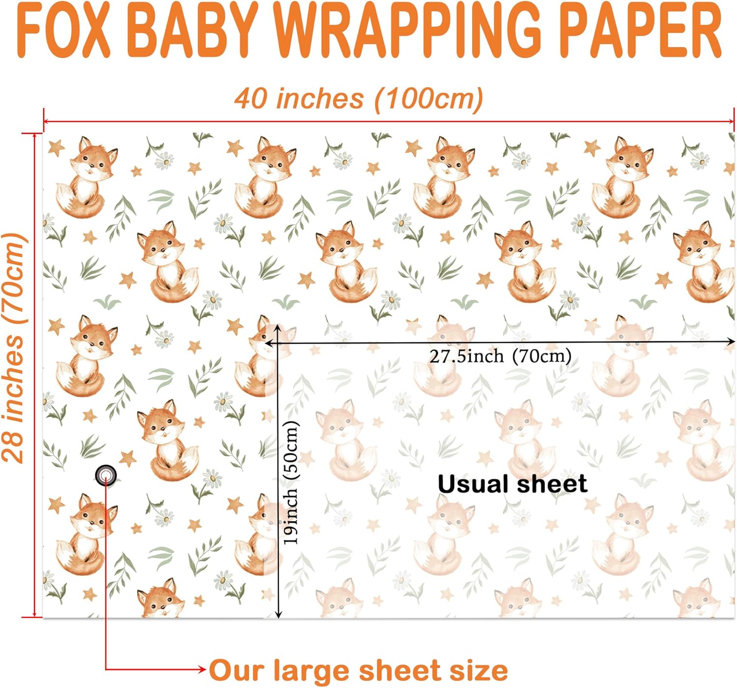 - Large Sheet Size: Cute Fox Baby Shower Wrapping Paper includes 4 folded sheets, each measuring 28 x 40 inches – plenty of paper to wrap multiple gifts, small or big gifts